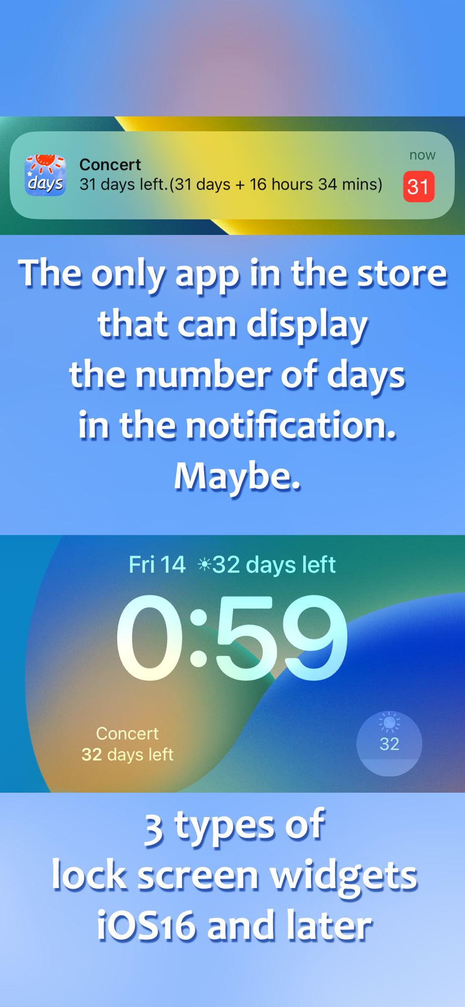 - When displaying only the number of days, the current day is set to 0.For example, if your appointment is around noonIf the previous night is the 1day (0 day and 13 hours), and after midnight, it becomes 0 day (0 day and 12 hours), making it easier to understand the current day.- Fixed a bug where links to emails and apps were not working.Thanks.
