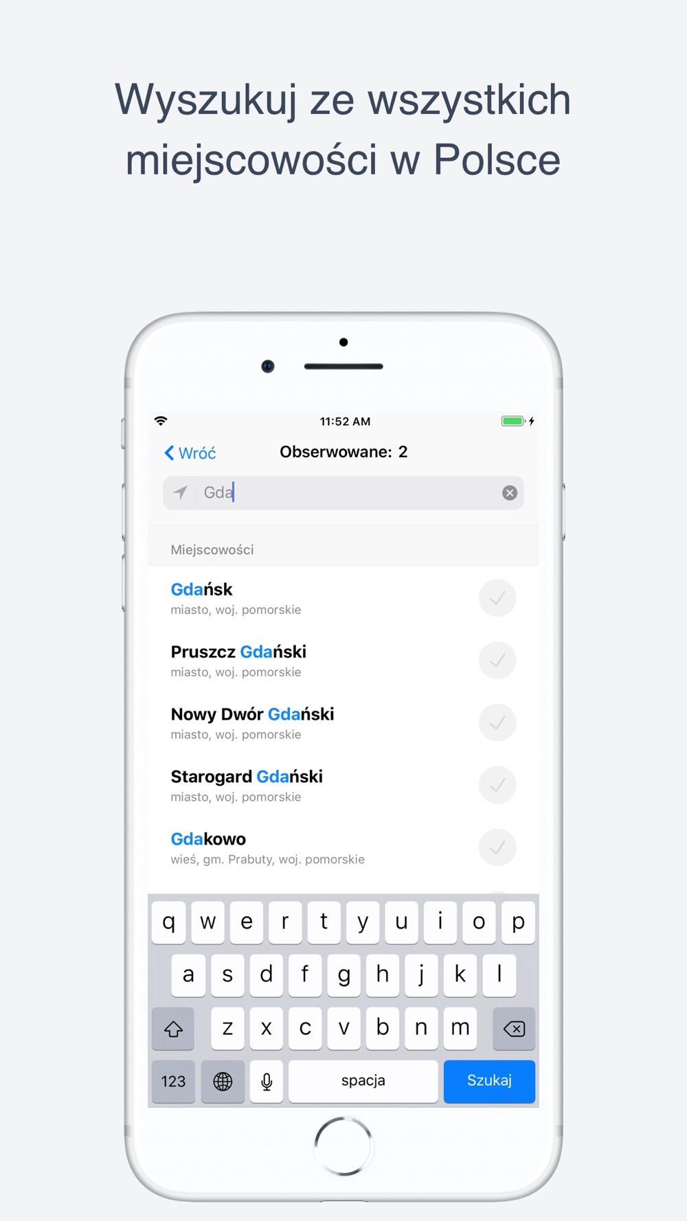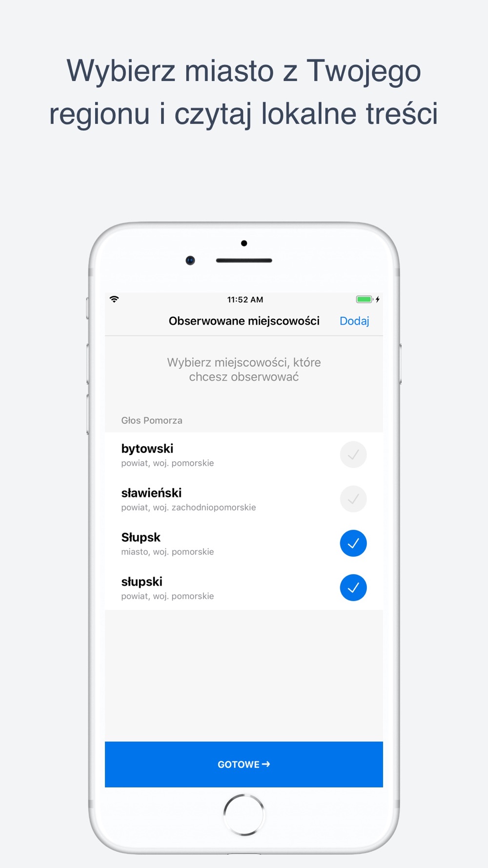 • Wygoda! Wybierz miejscowości, które chcesz obserwować, aby szybko dostać aktualności i informacje lokalne