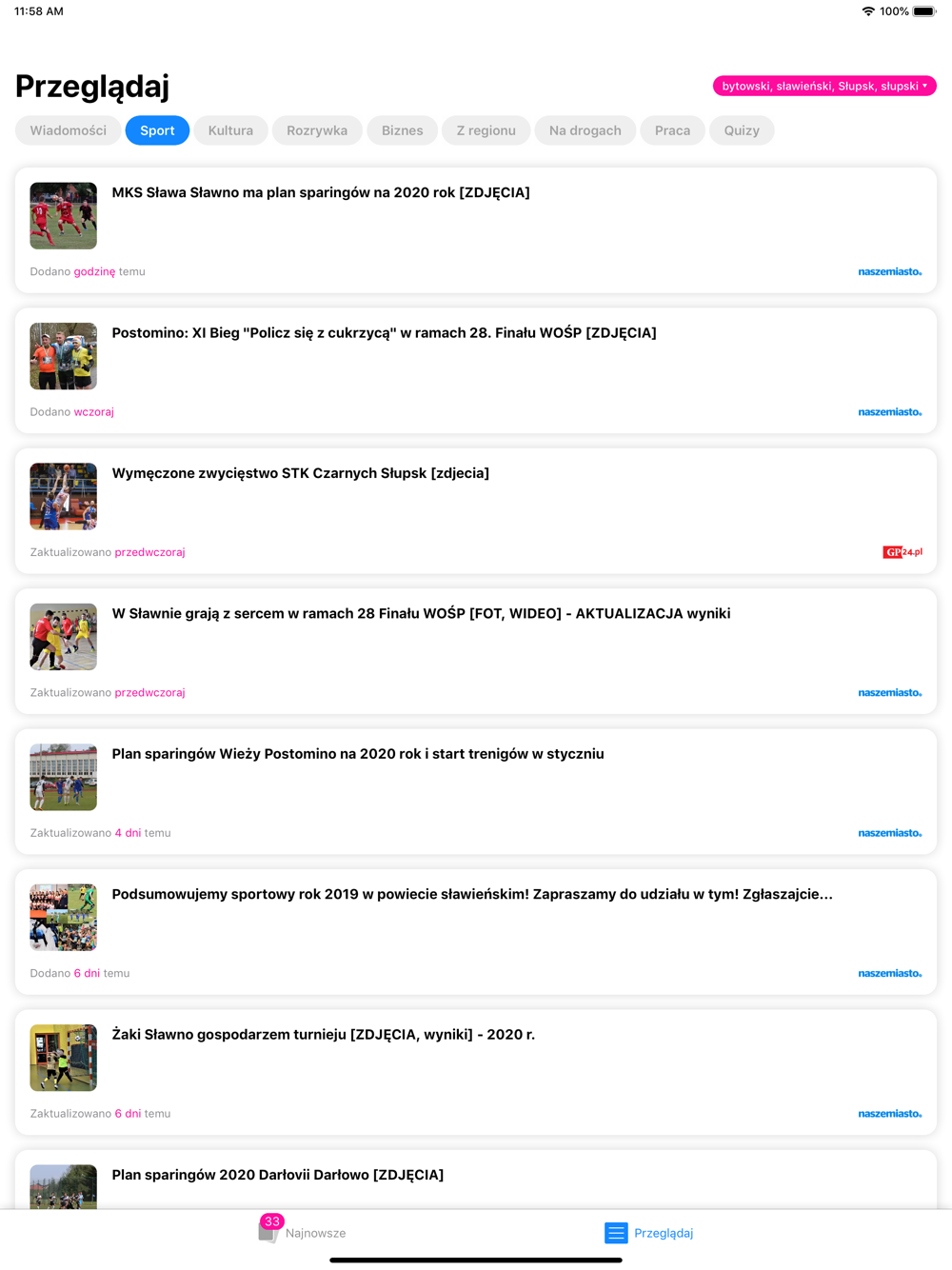 Informacje lokalne, które Cię interesują - tylko z miejscowości, które chcesz obserwować. Oprócz wiadomości lokalnych, w aplikacji publikujemy na bieżąco również newsy o lokalnym sporcie, biznesie, sytuacji na drogach i wiele innych.