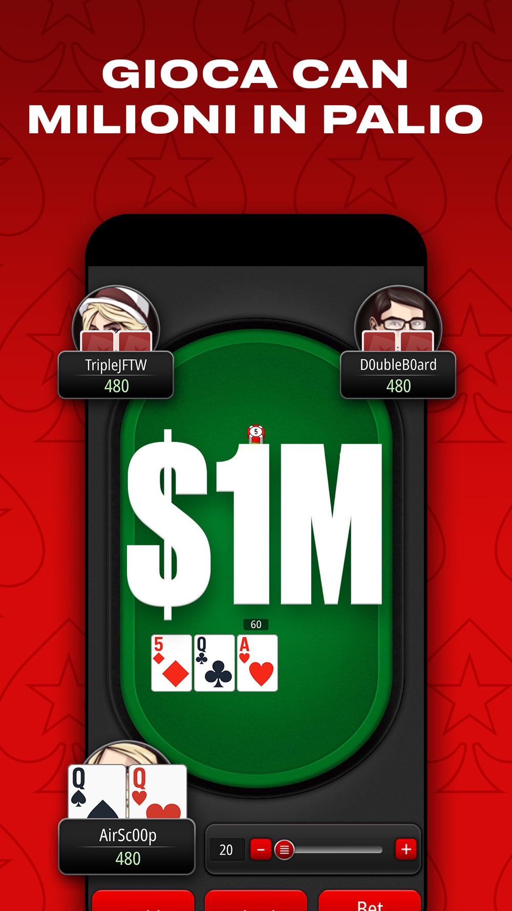 Gioca responsabilmente e punta solo quello che puoi permetterti. Per chiedere aiuto e assistenza contro la dipendenza dal gioco, visita www.pokerstars.it/about/responsible-gaming/.