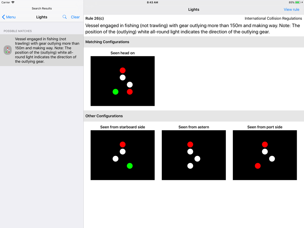 Boat Lights: intuitive, useful and simple to use boat mobile app for boat operators to determine the meaning of navigation lights, shapes and sounds used on the water.