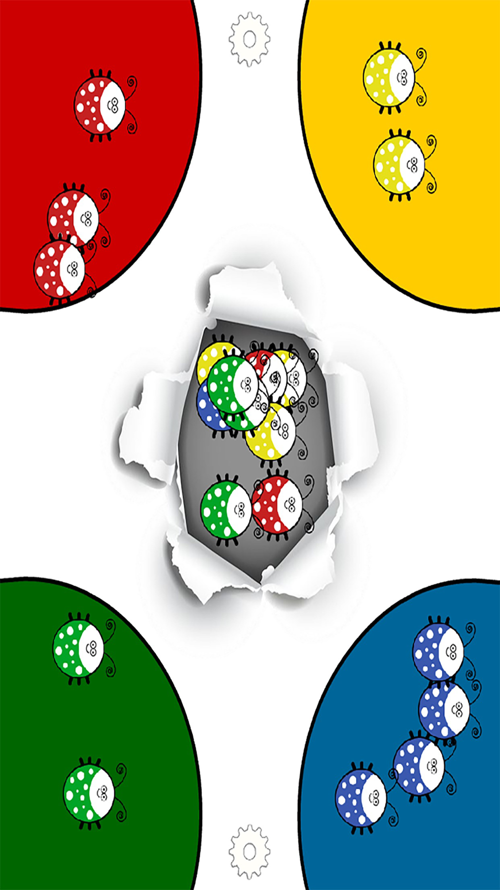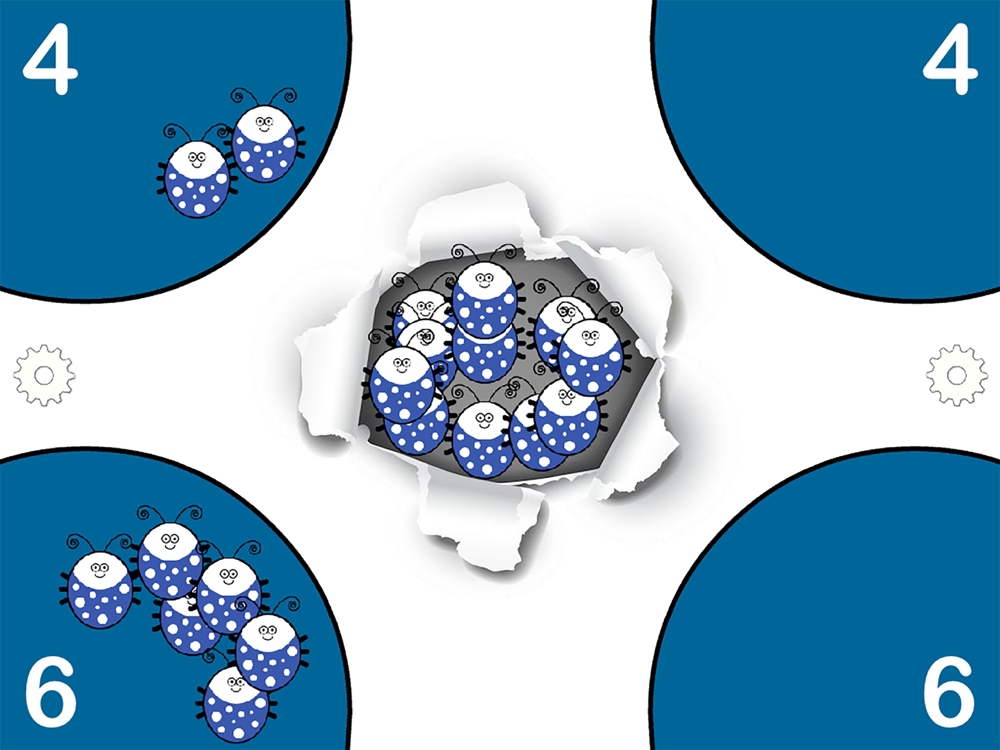 1-4 drag red, blue, green and yellow bugs to their spaces