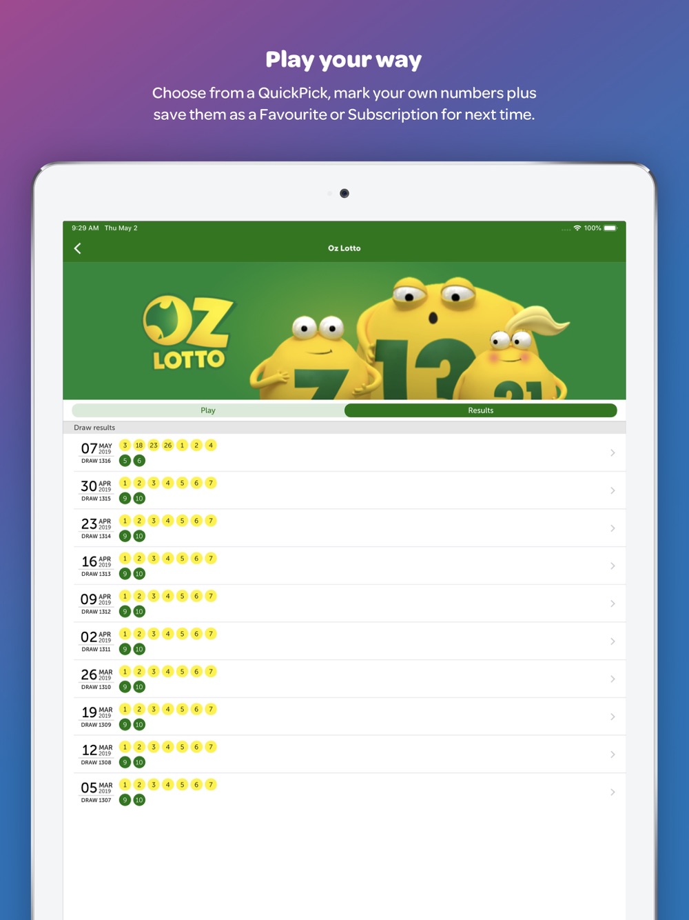 The App is free to download and is the only official App provided by the Government Licenced Lottery Operators Tattersalls, Golden Casket, NSW Lotteries and SA Lotteries.