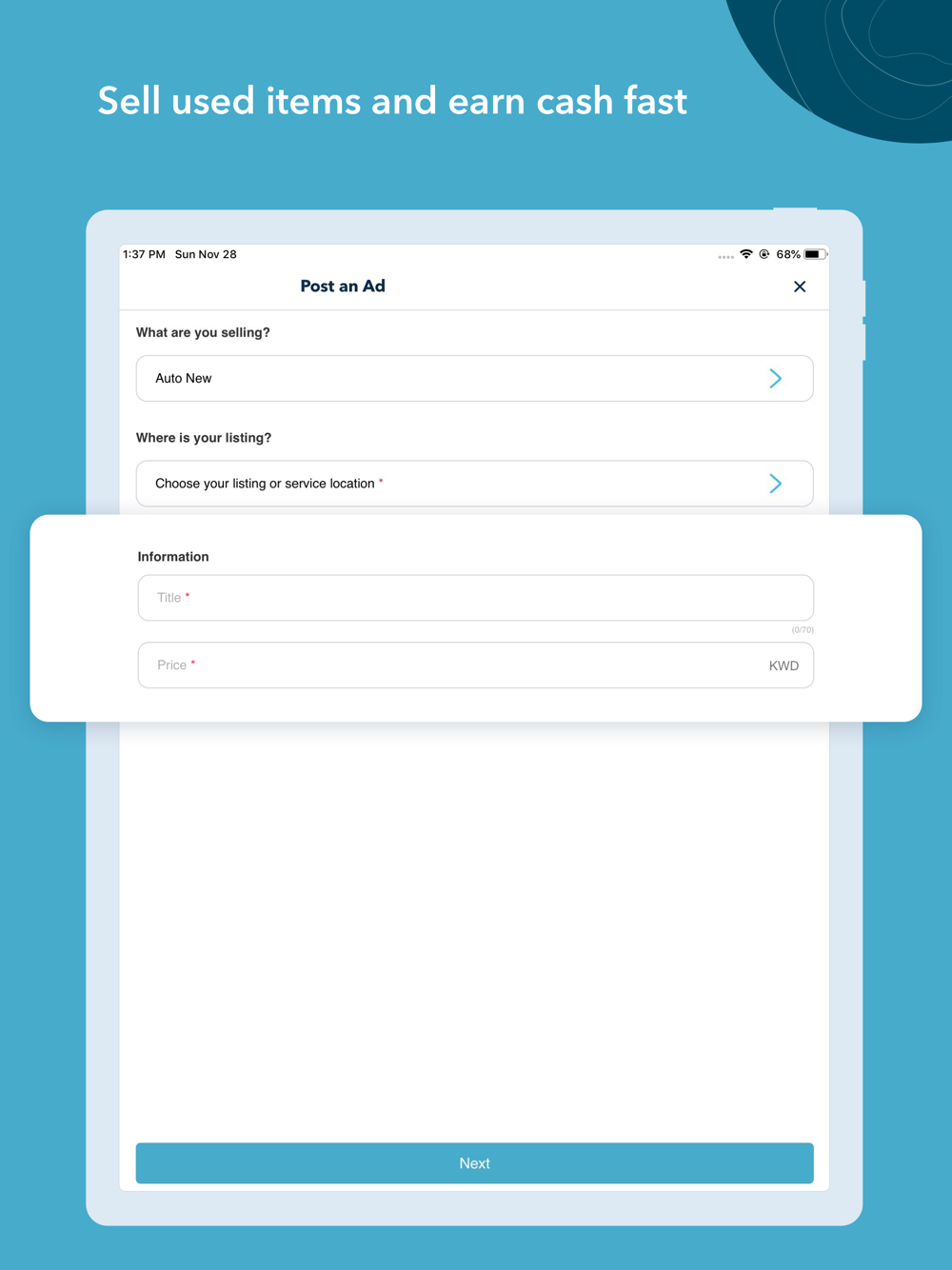 • Easy Upload and Pay of your item advertisement (cars, bikes and boats) in www.q8car.com website and on the local classifieds