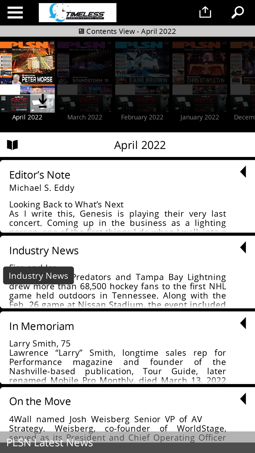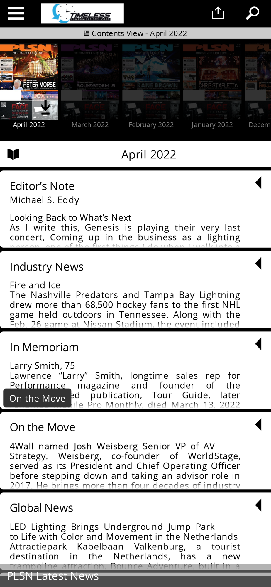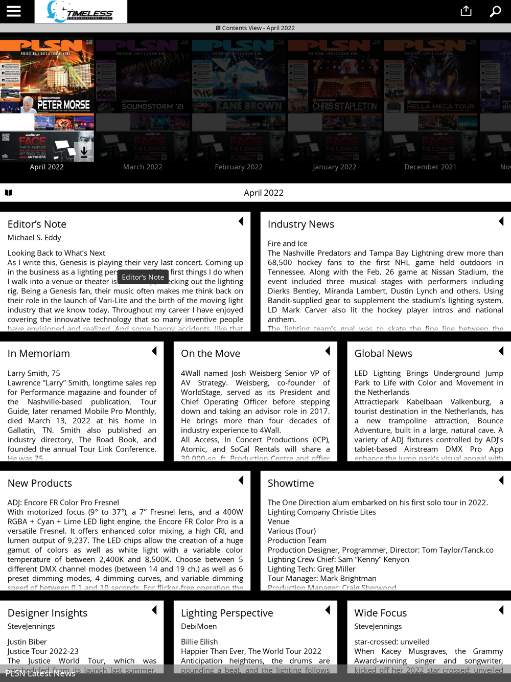 Projection, Lights & Staging News Magazine is the leading source and record of news for the visual presentation and entertainment technology industries. We provide coverage of the latest news, products and commentary each month. Inside you will find news about the industry from around the world, product news & road tests, opinions & ideas to advance the industry and much more! Each month you can easily download the latest or past editions of the magazine all right within the application.