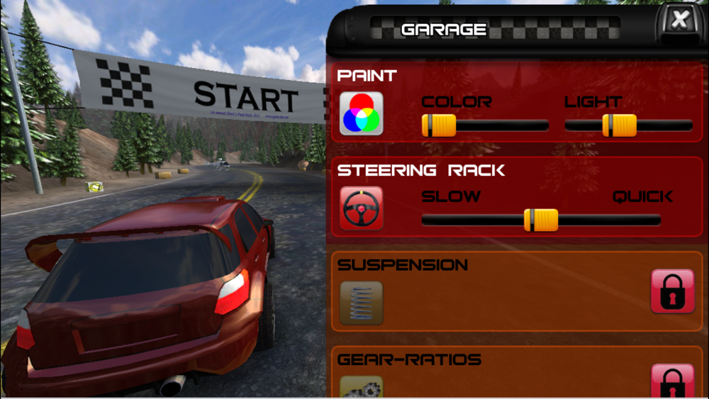Purchase any upgraded or classic rally car to unlock more tuning features and unlock down-hill mode !