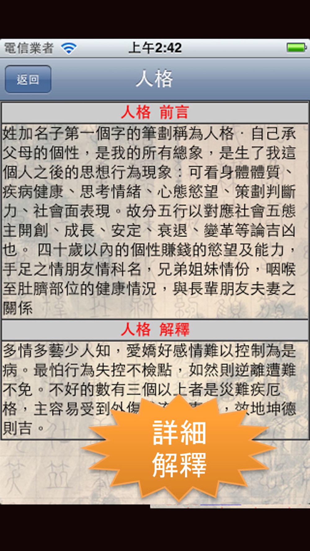 不只像一仿間姓名學只解釋 天地人總外 五格的解釋而已,還包含相關的關連解釋