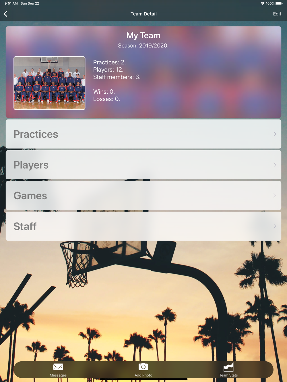 Add your players infos, photo, and game's performance; the app will calculate all the total stats for every single player automatically.