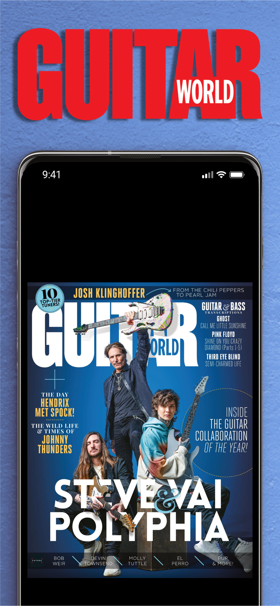 For more than 31 years, Guitar World has served as North America's leading publication for rock guitarists, providing unique instructional content, exclusive photography and interviews with the genre's leading celebrity guitarists. Each month, Guitar World offers lessons that help players refine their craft, in-depth reviews of the latest guitars, amplifiers and effects, current happenings from around the rock scene, celebrity columnists and one-on-one conversations with artists ranging from iconic superstars to the young guns of today.