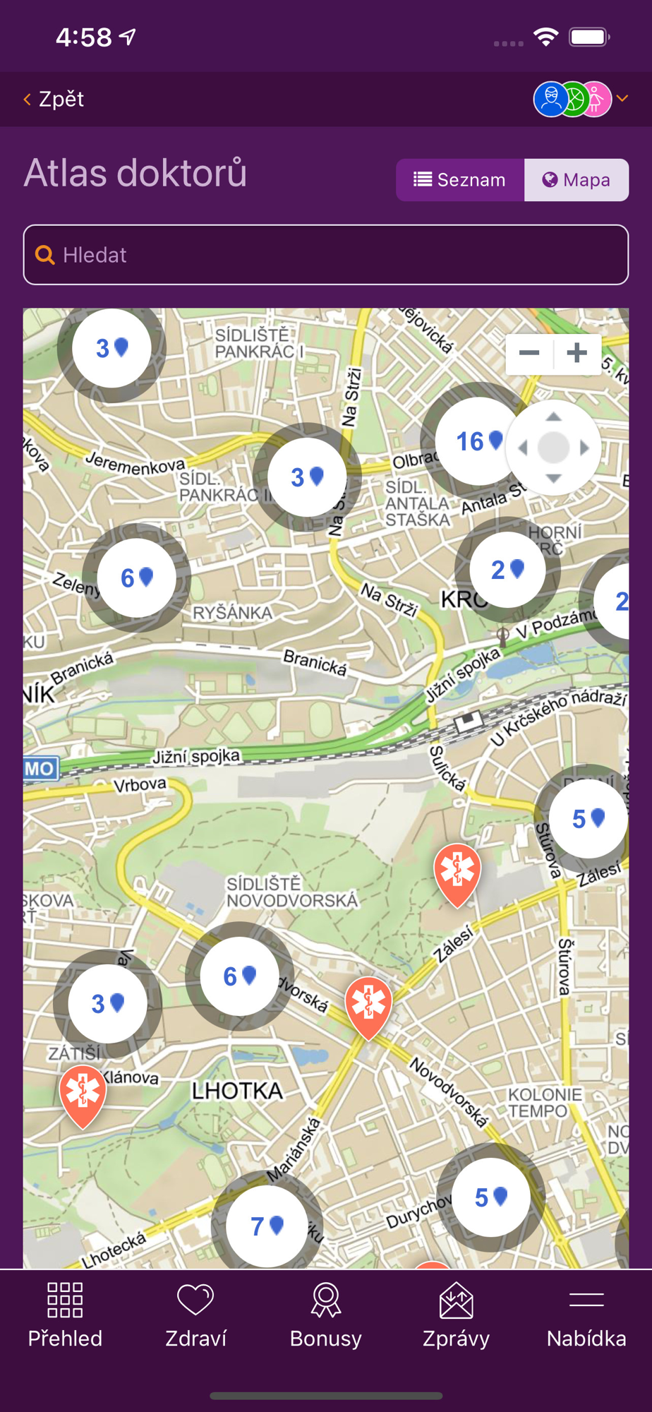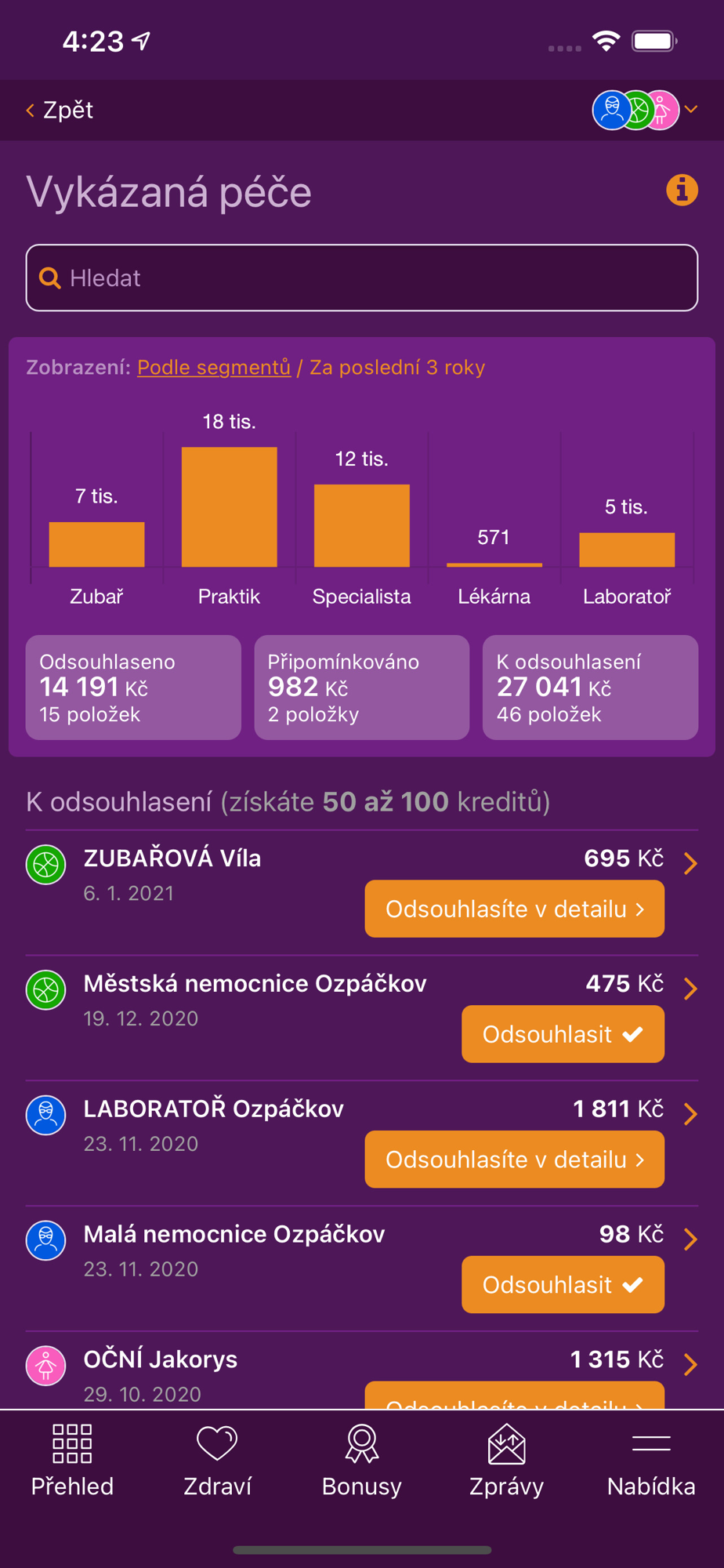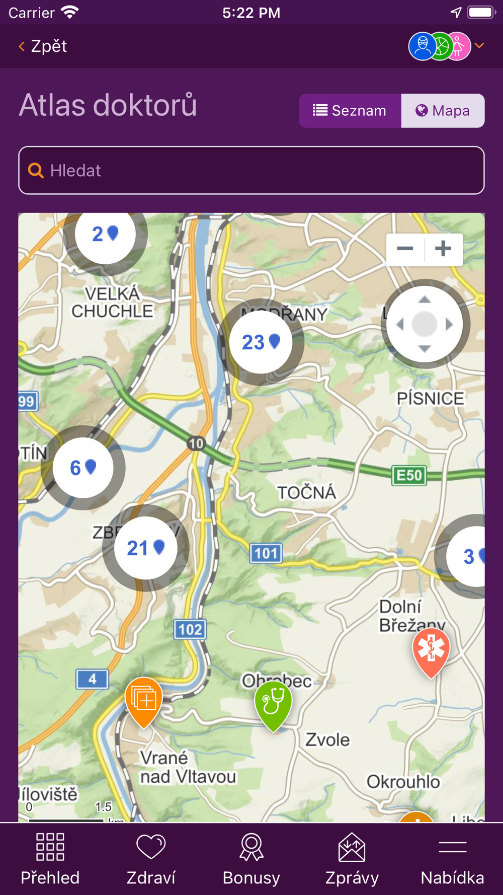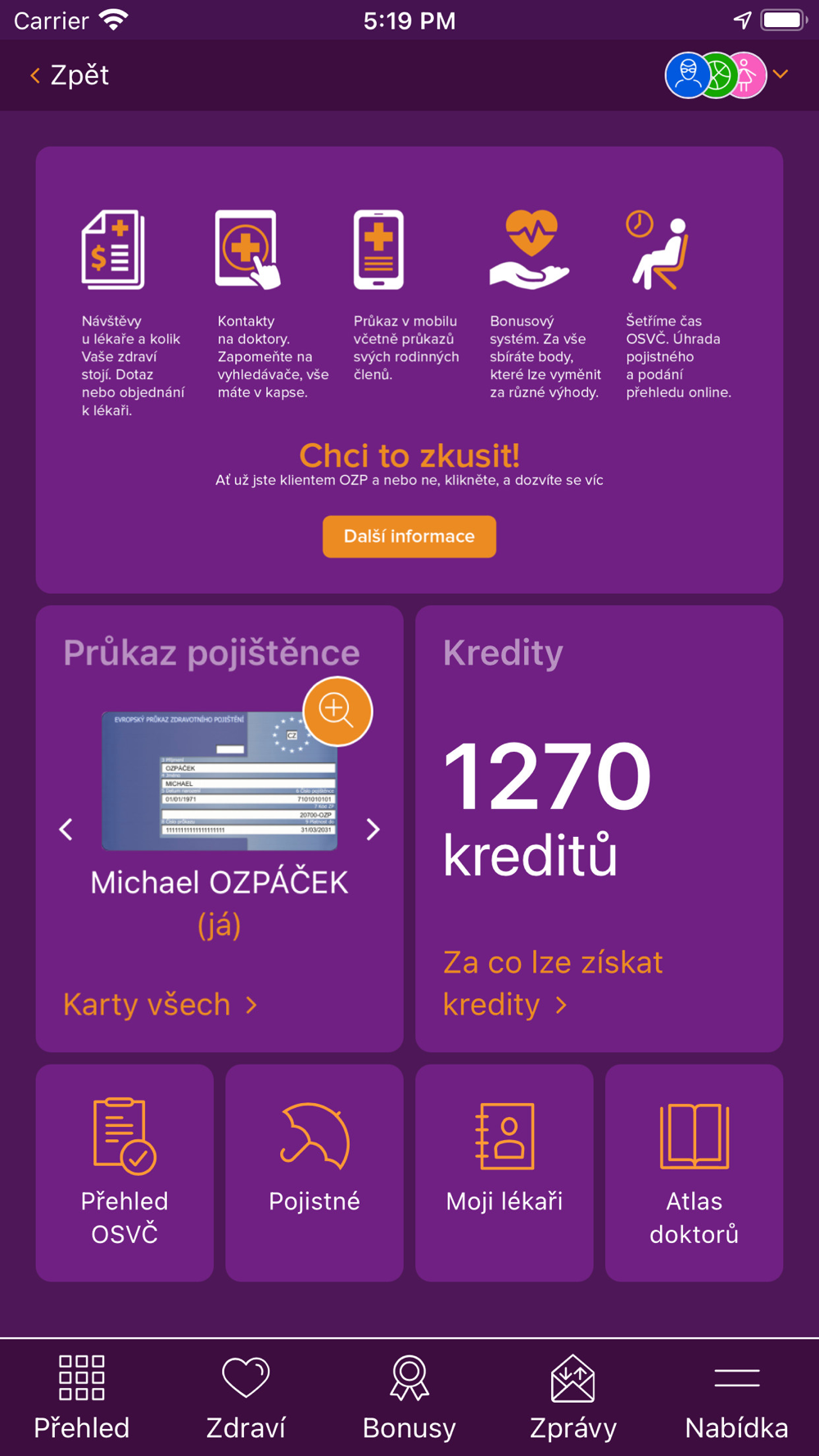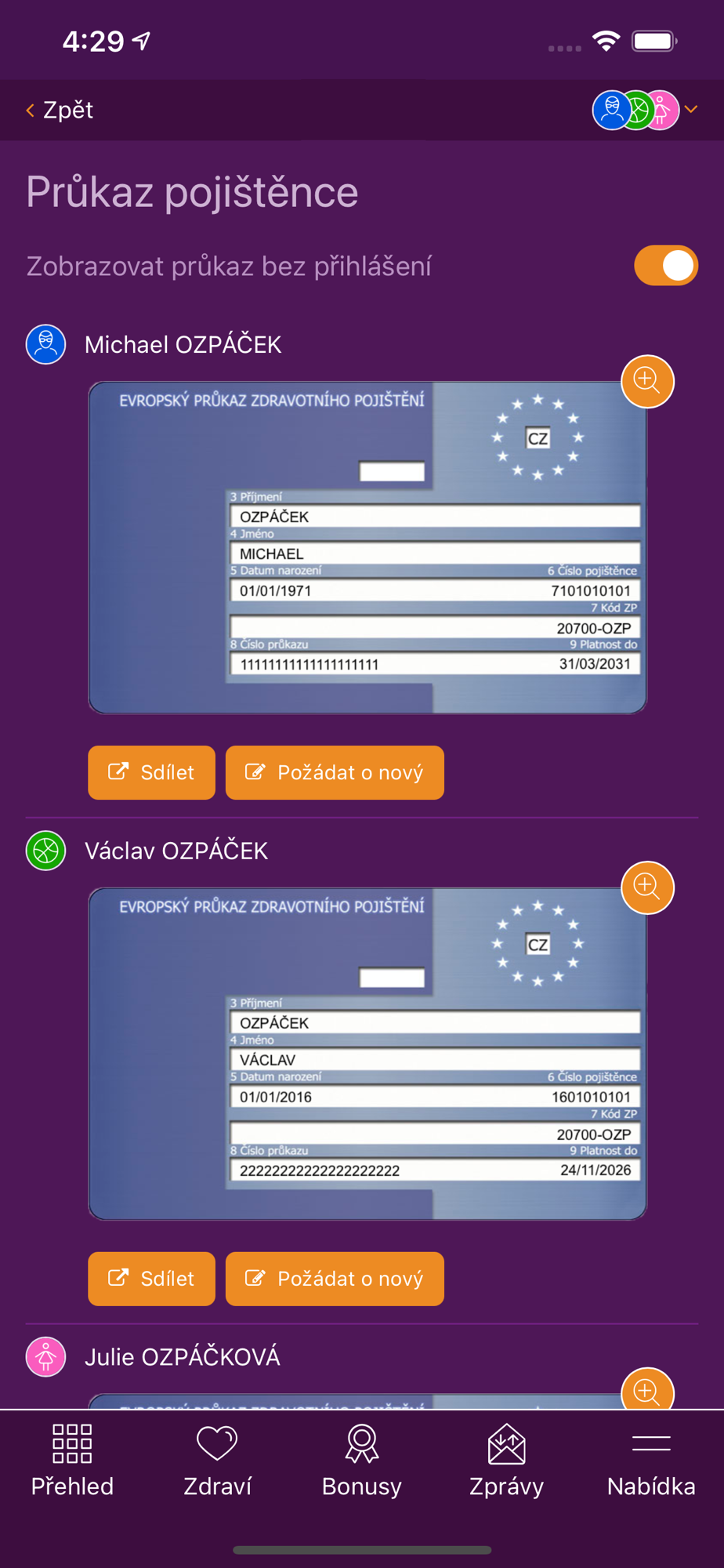 V aplikaci můžete mít kromě svých vlastních údajů také data svých dětí, případně také data partnera, rodičů, apod.