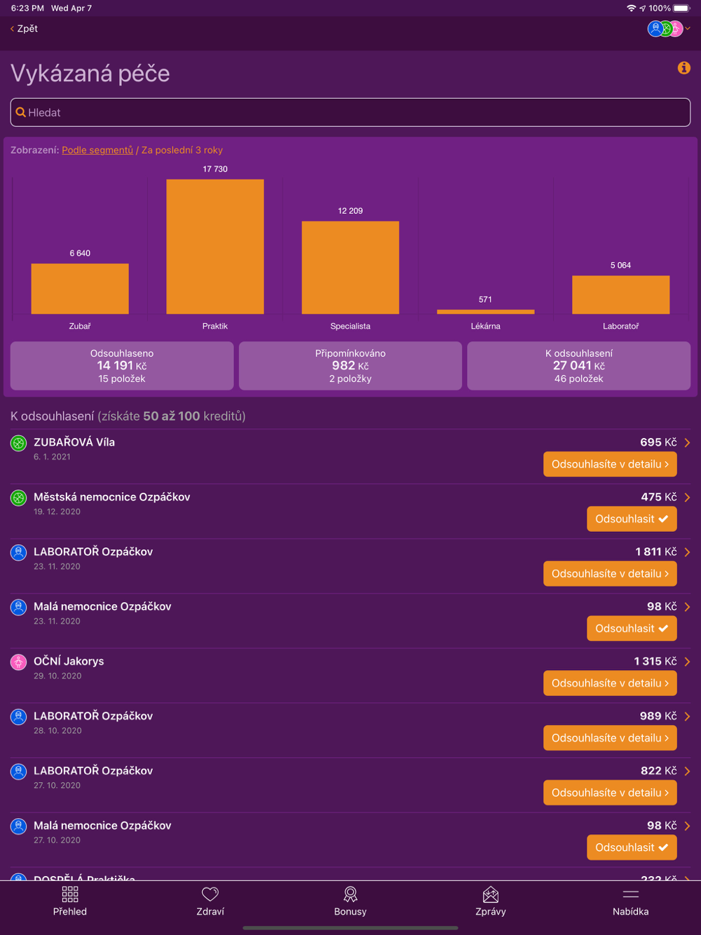 - zdravotní vykázané péče, kterou OZP proplatila jejich lékařům (praktickému lékaři, ambulantním specialistům, nemocnicím...),