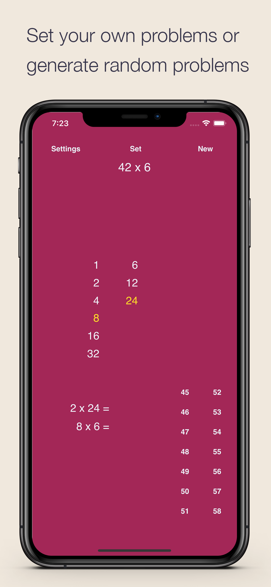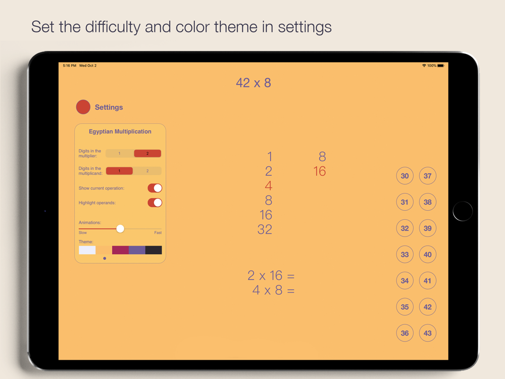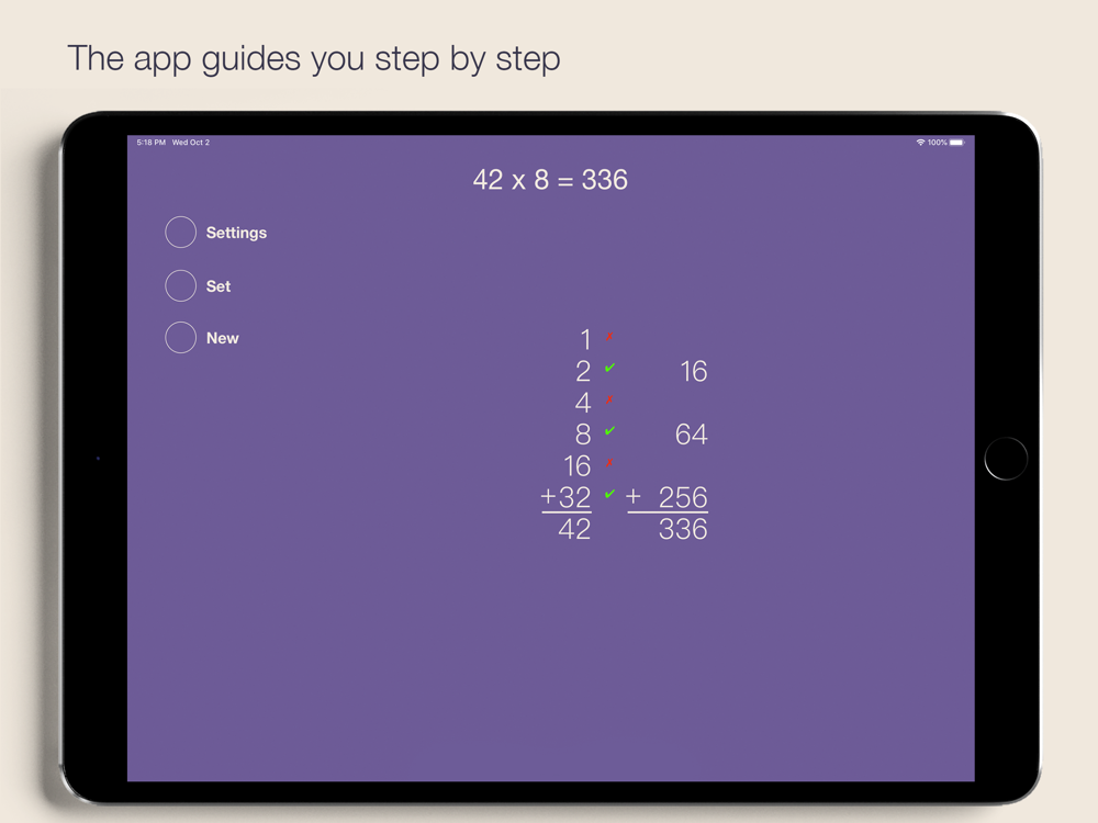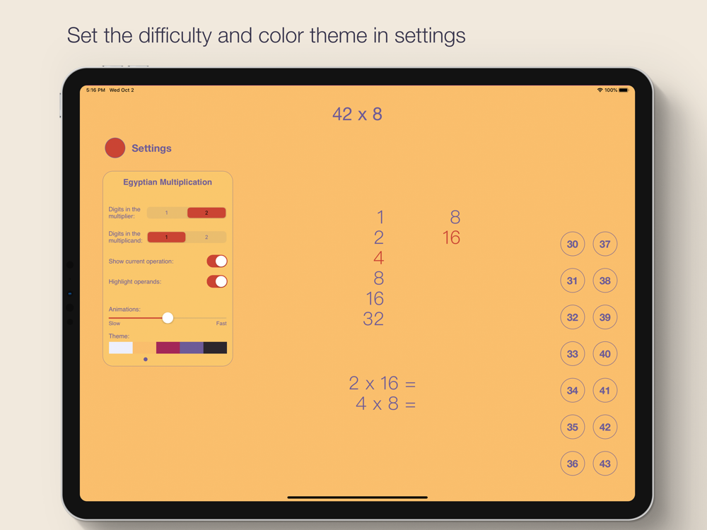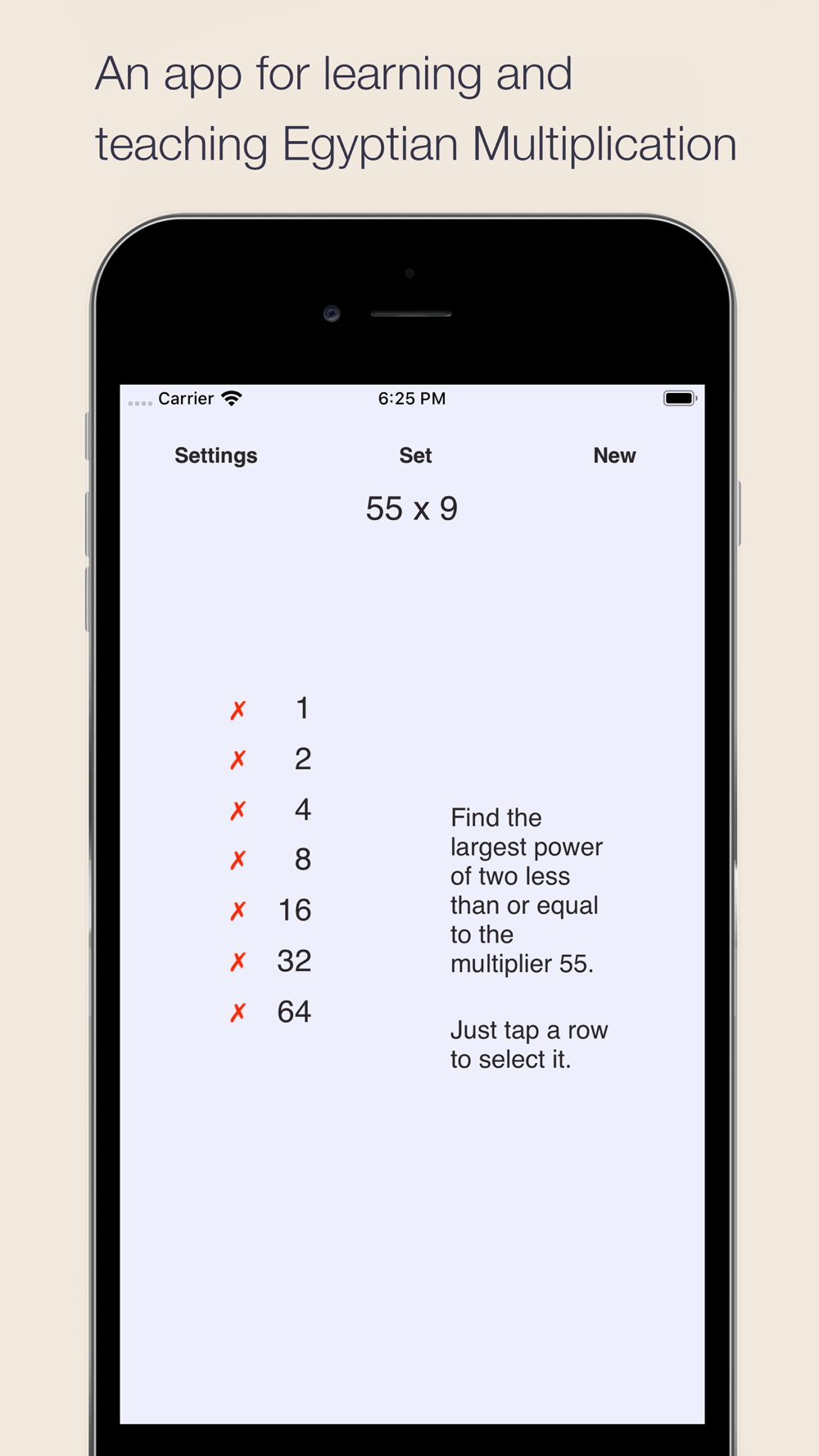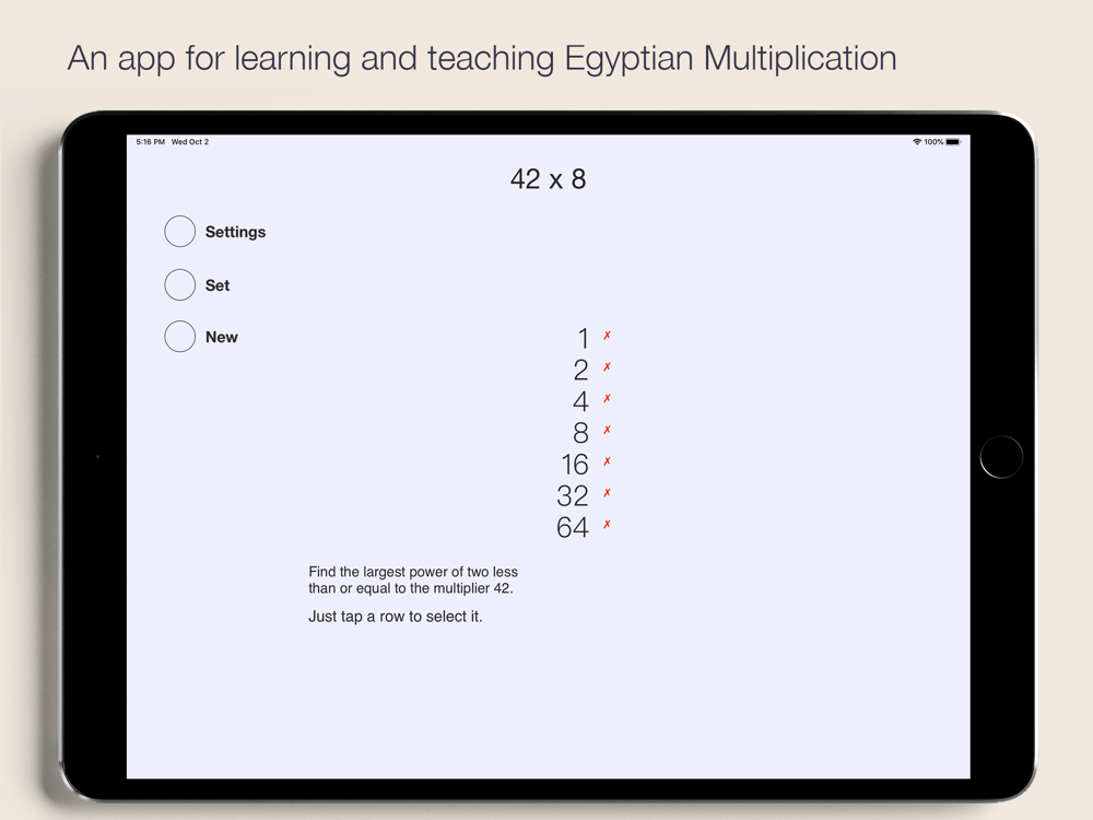 This app can be used to teach and study the ancient Egyptian multiplication method.