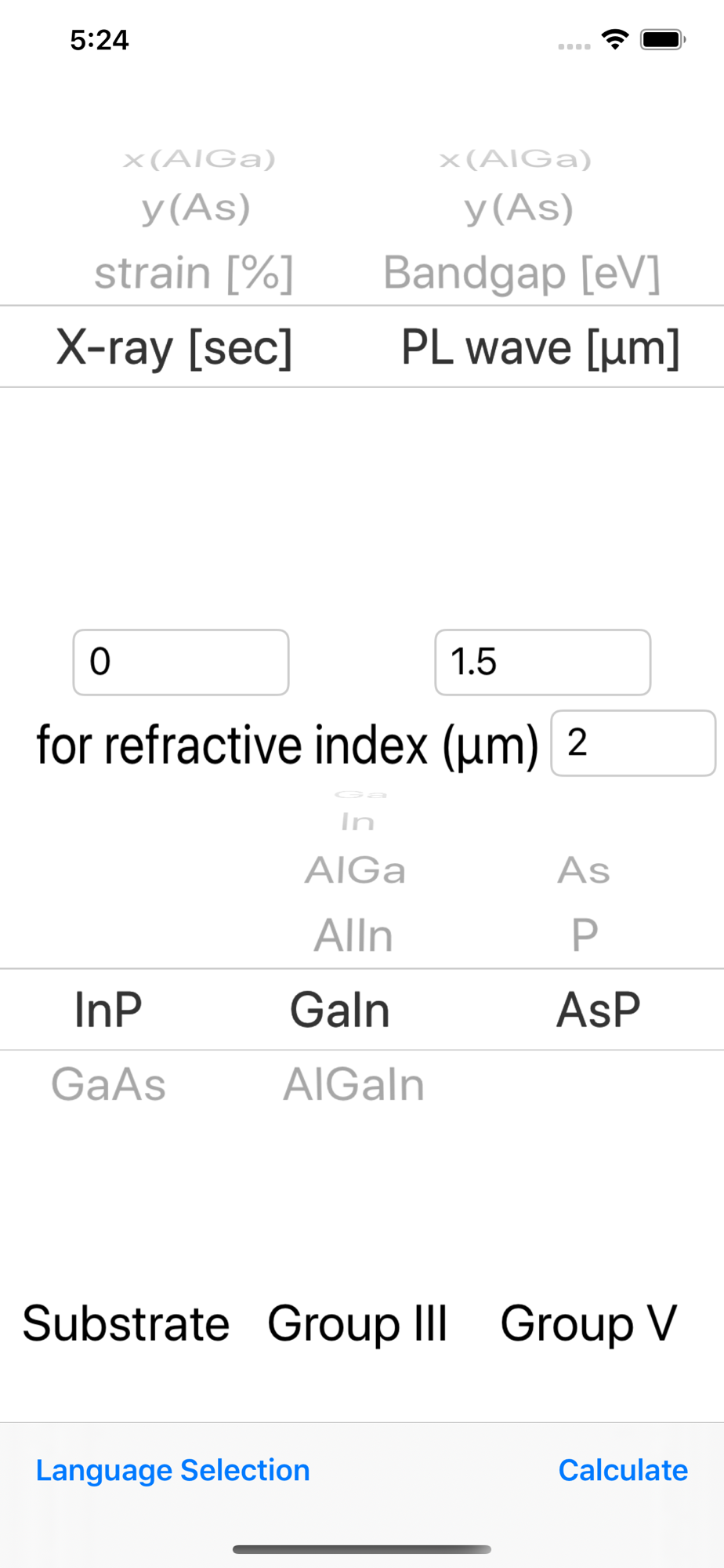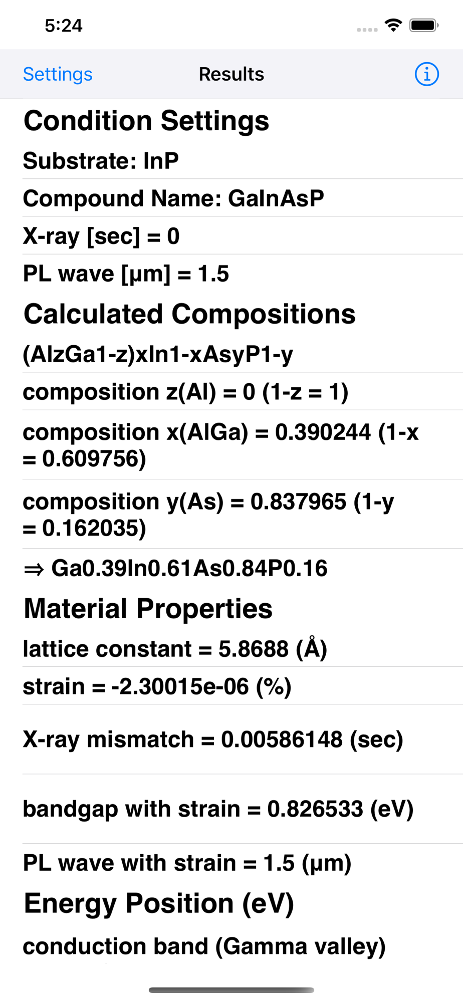 Application to calculate the compositions and material properties of a III-V compound semiconductor.