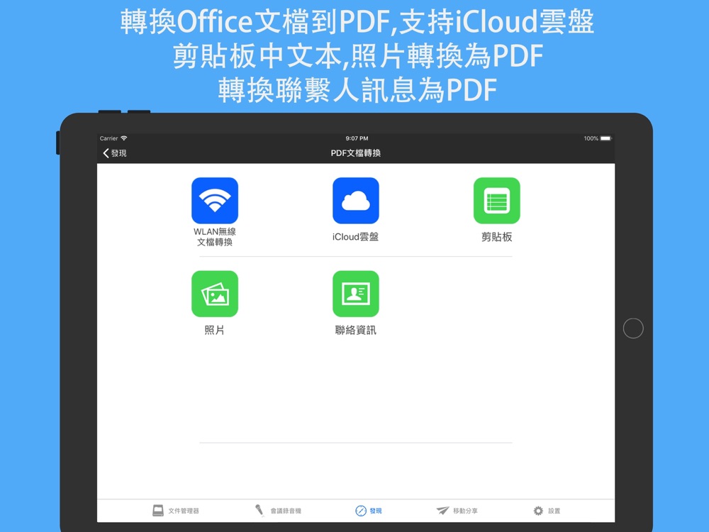 文檔格式: pdf,ppt,pptx,xls,xlsx,doc,docx,rtf,txt,iwork...