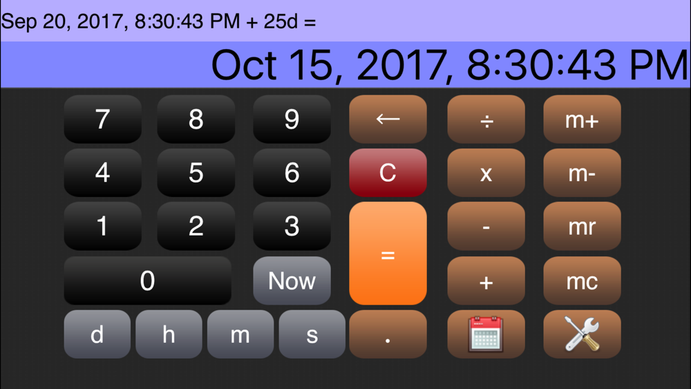 - Press the calendar button to add and subtract days, hours, minutes and seconds to any date