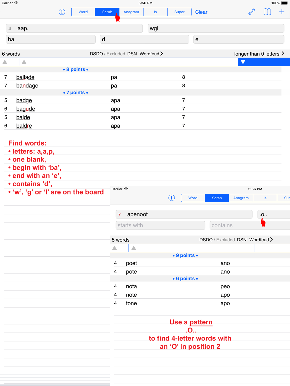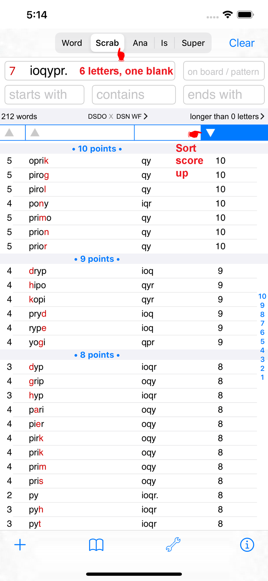 Solve crossword puzzles, cryptograms, Wordfeud, Scrabble™, or just check your spelling. Sort by word length, alphabet or score to find not just the longest words, but the words with the highest score!