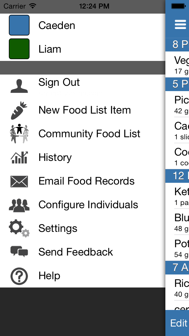 - Community Food List provides shared items you can add to your personal food list, or share yours with the community