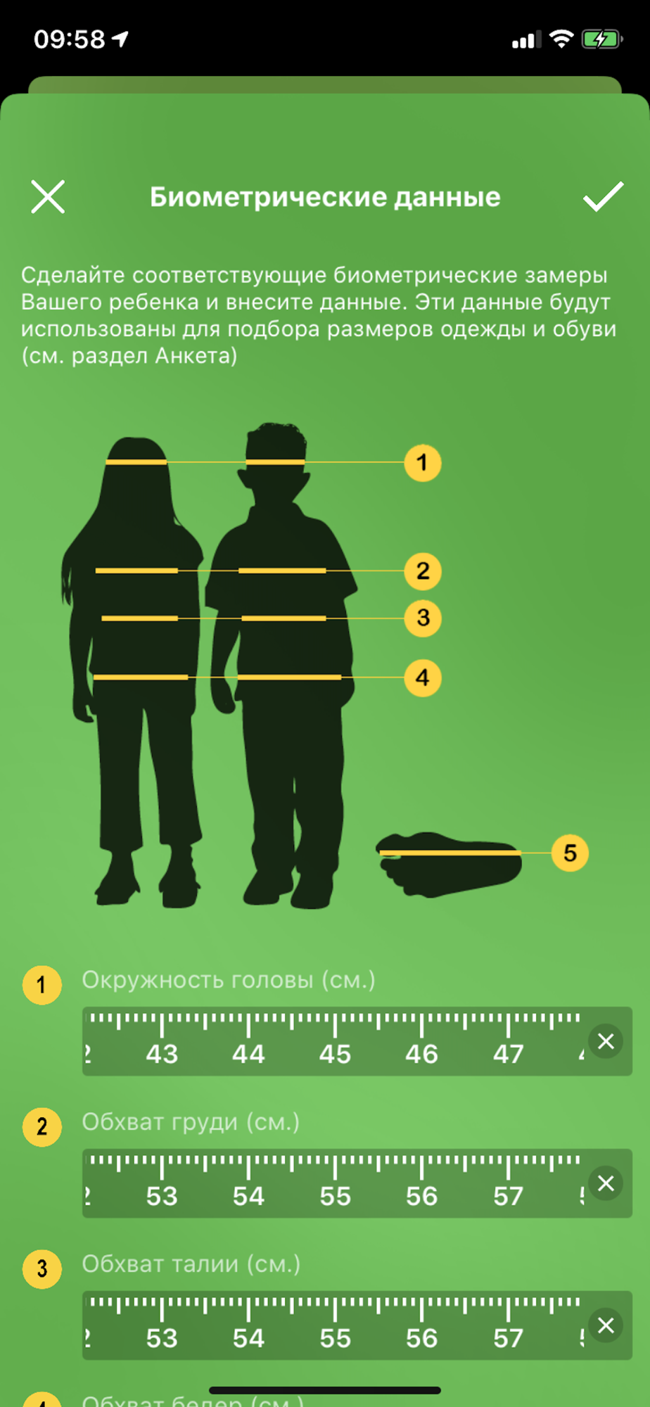 - Раздел «Анкета на сегодня» содержит главную актуальную информация по ребенку за весь период: аллергии, серьезные болезни, последние биометрические данные, группа крови, а также размеры одежды, которые ему сейчас подойдут. Добавив в программу часто используемые документы ребенка (полис ОМС, свидетельство о рождении и т.д.) Вы легко сможете просмотреть их через этот раздел. Т.о. эти, часто требуемые, документы будут всегда у Вас под рукой.