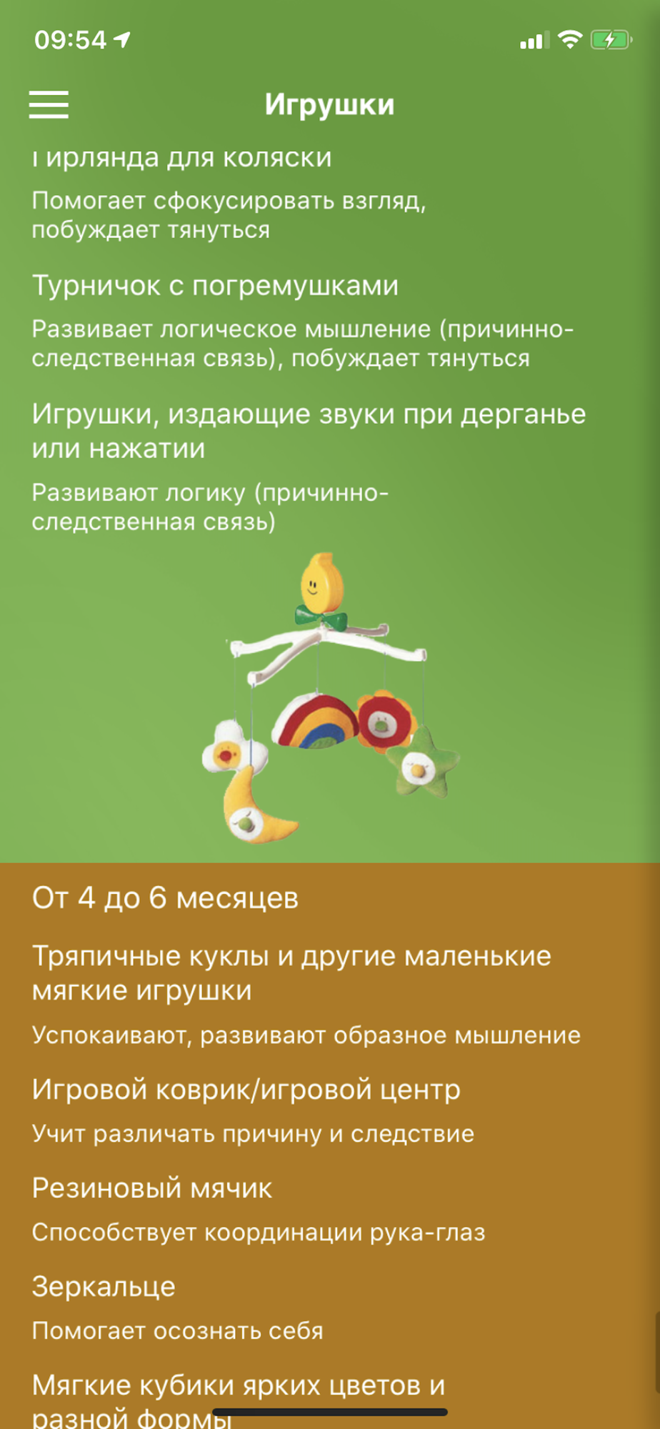- Раздел Игрушки поможет подобрать ребенку развивающую игрушку в тот или иной период его жизни.