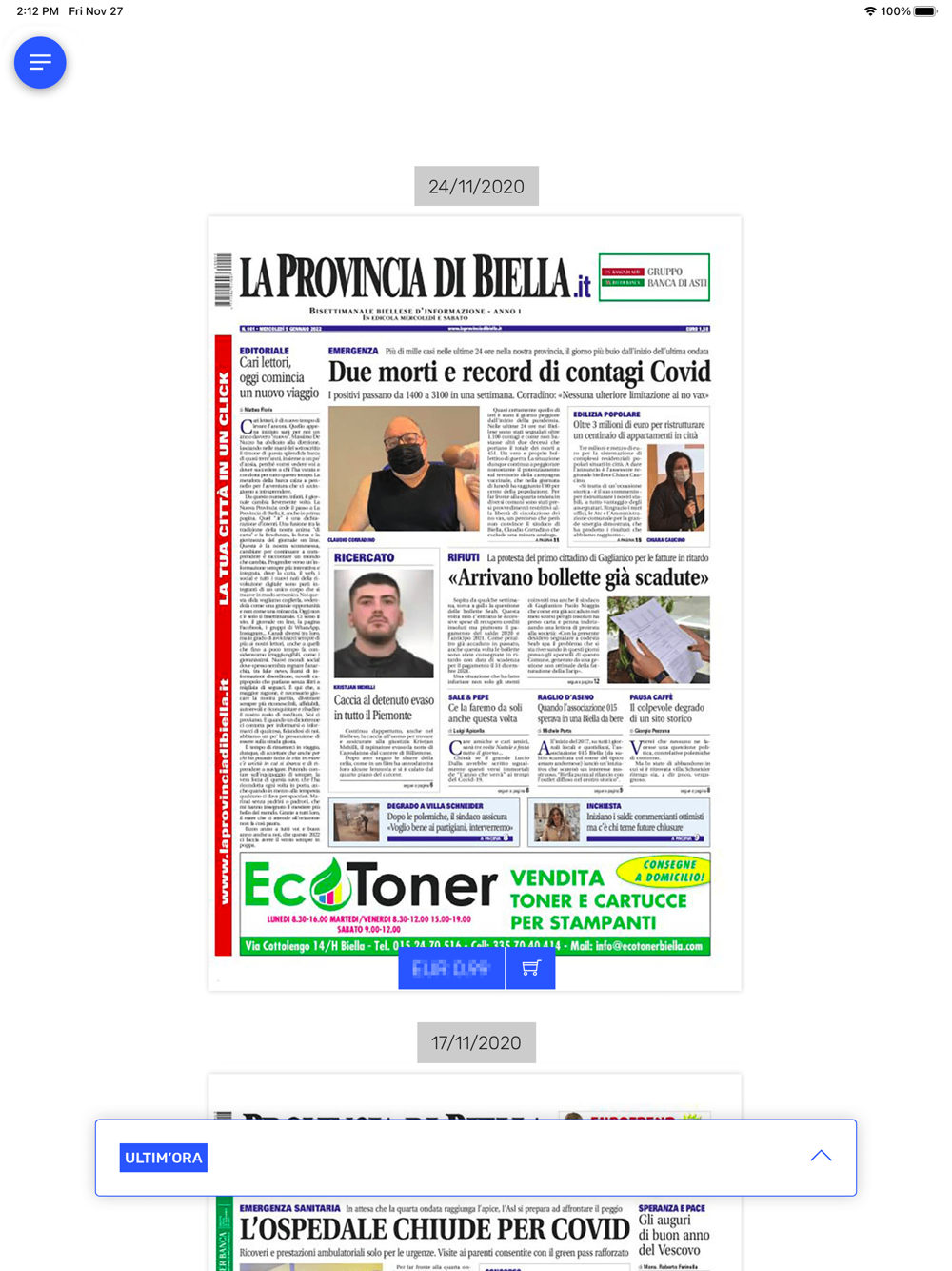 Puoi consultare gratuitamente la prima pagina o acquistare l'edizione completa. Sfogliando le pagine del giornale, ingrandendo i contenuti, ruotando il dispositivo, sarai libero di leggere in piena comodità e nella modalità preferita.