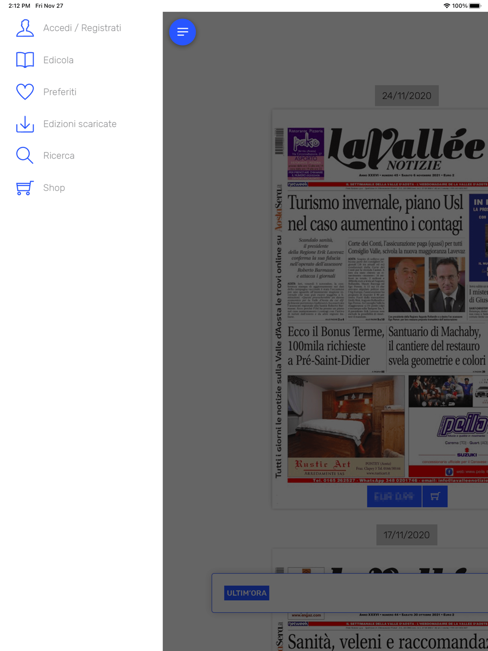 Puoi consultare gratuitamente la prima pagina o acquistare l'edizione completa. Sfogliando le pagine del giornale, ingrandendo i contenuti, ruotando il dispositivo, sarai libero di leggere in piena comodità e nella modalità preferita.