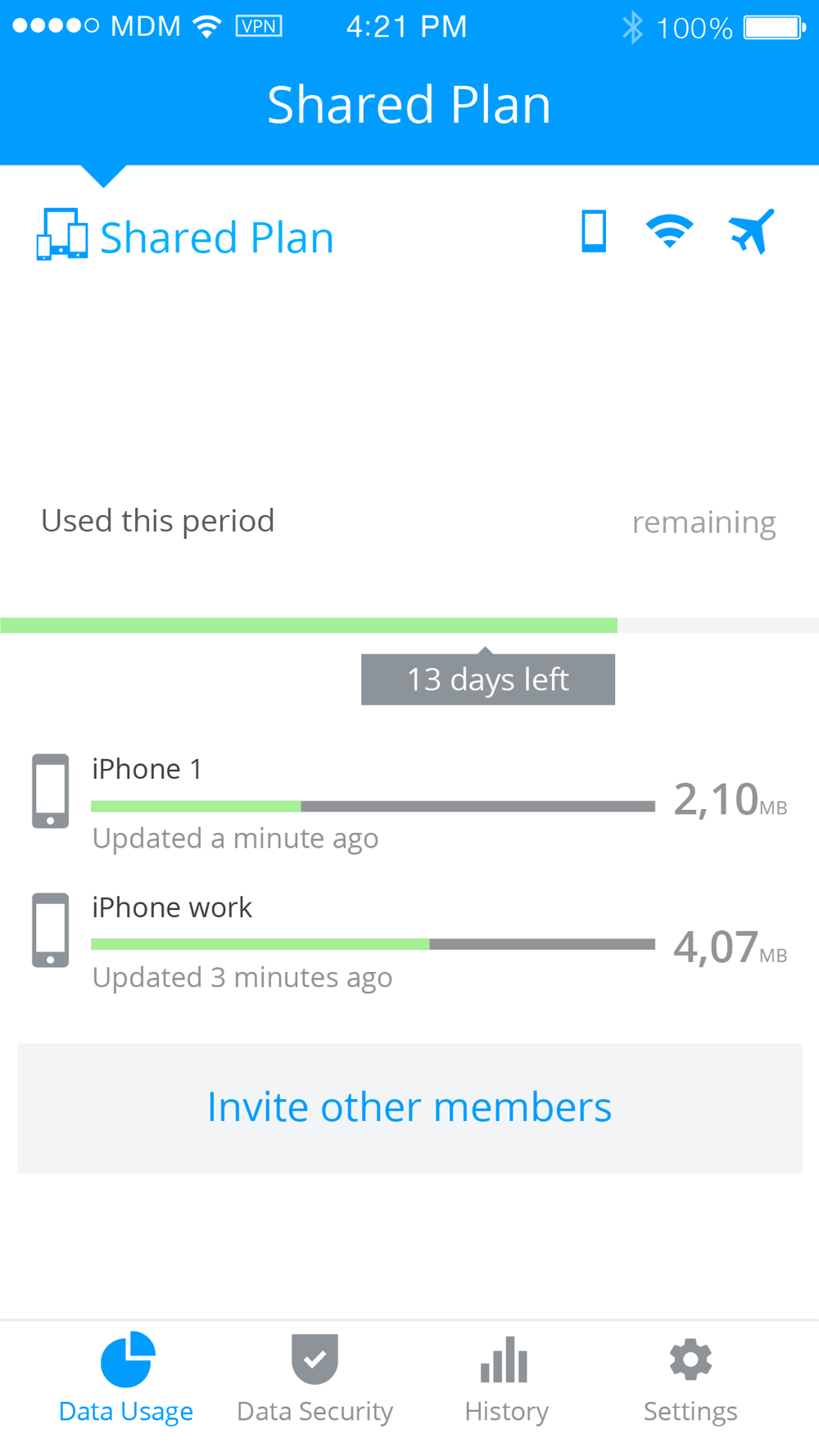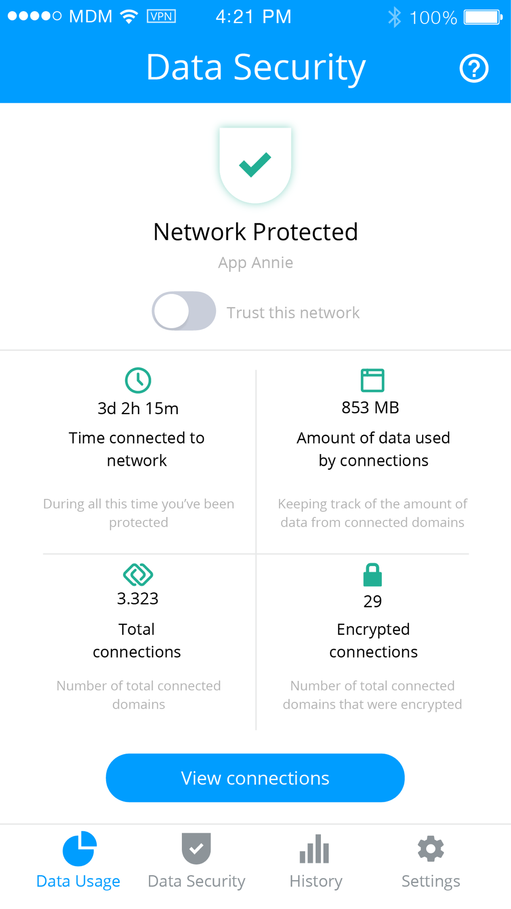 My Data Manager provides an ongoing record of your data usage, so you can know your limits, feel confident about your mobile data expenses and use your device whenever and however you want. Utilizing effective VPN technology, My Data Manager is safe and secure, offering an extra level of privacy for your mobile.