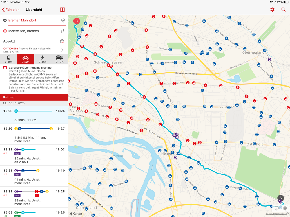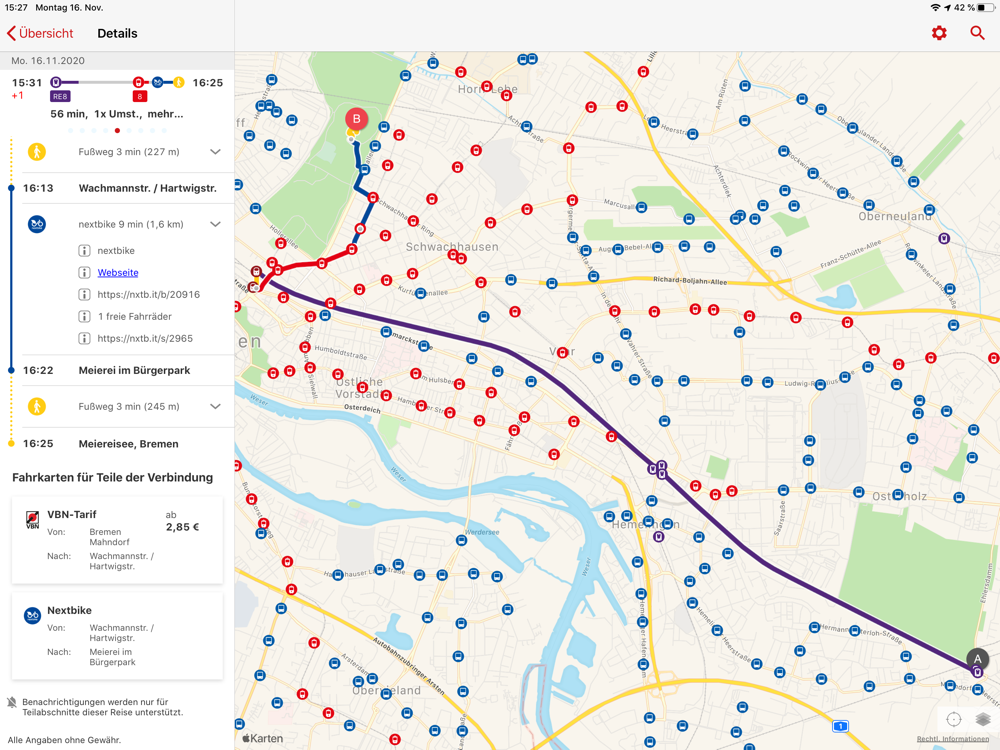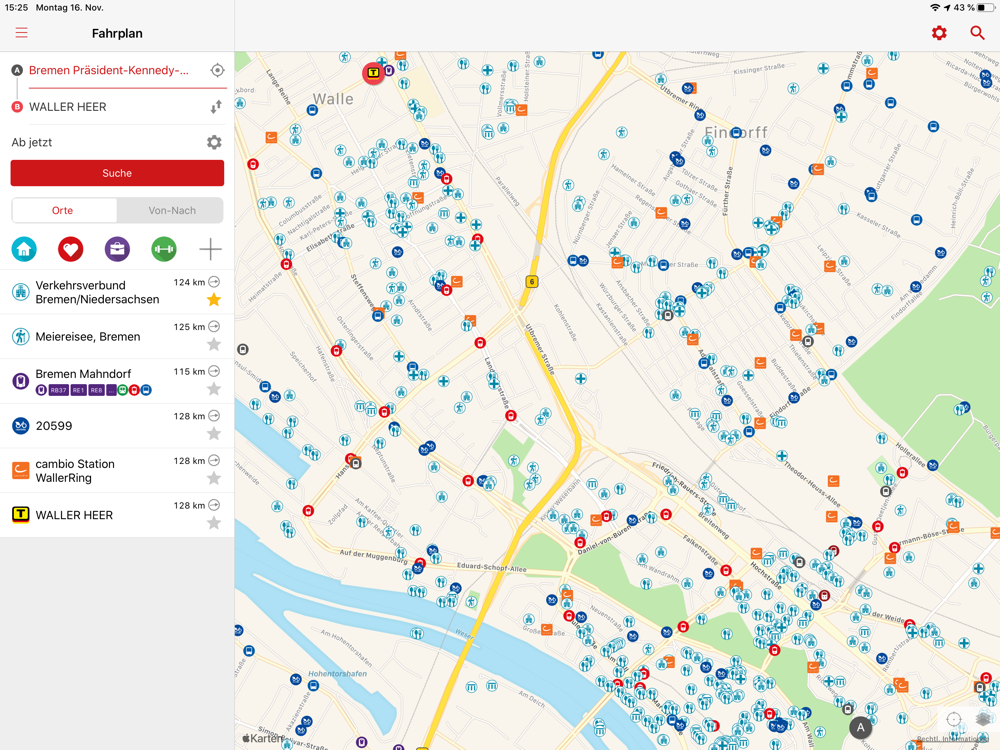 • Route planning not only with public transport but also with bikesharing from Nextbike, carsharing from cambio and taxi offers from TaxiDeutschland – so you always reach your destination!