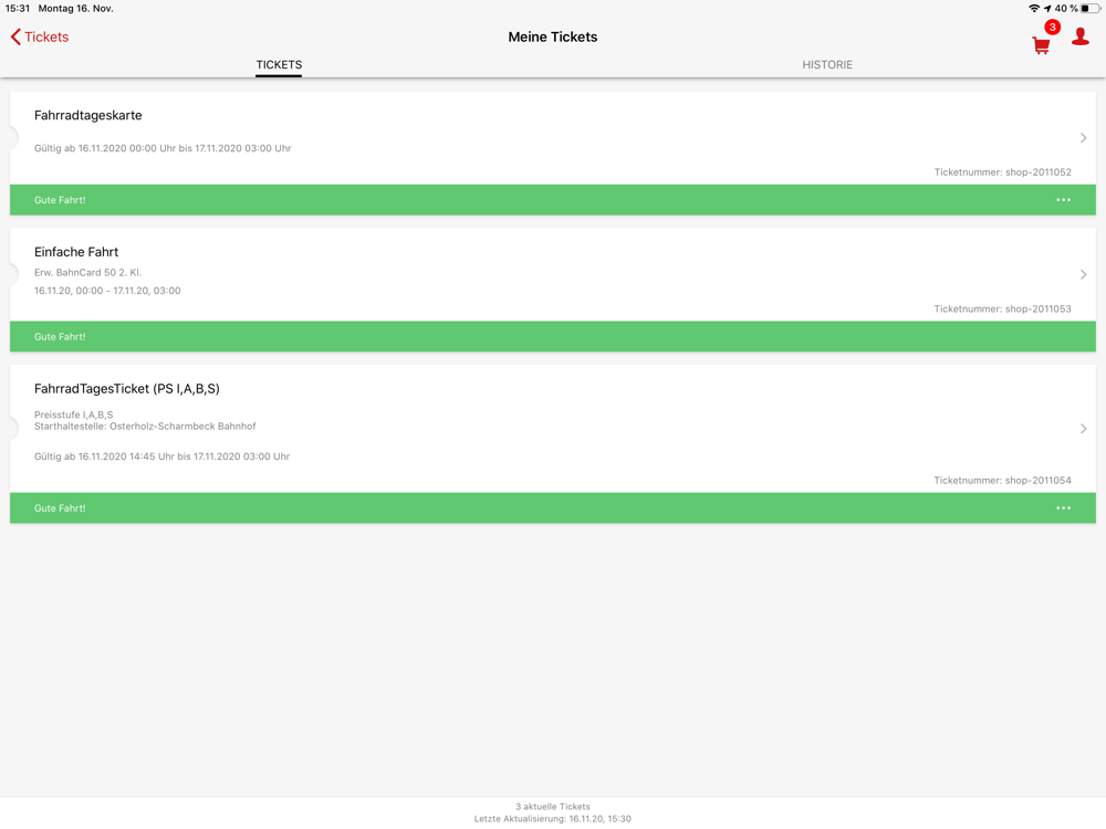 Mobile tickets are available for all services within the Bremen/Northern Saxony transport association (VBN) and regional trains within the Niedersachsentarif (Lower Saxony).