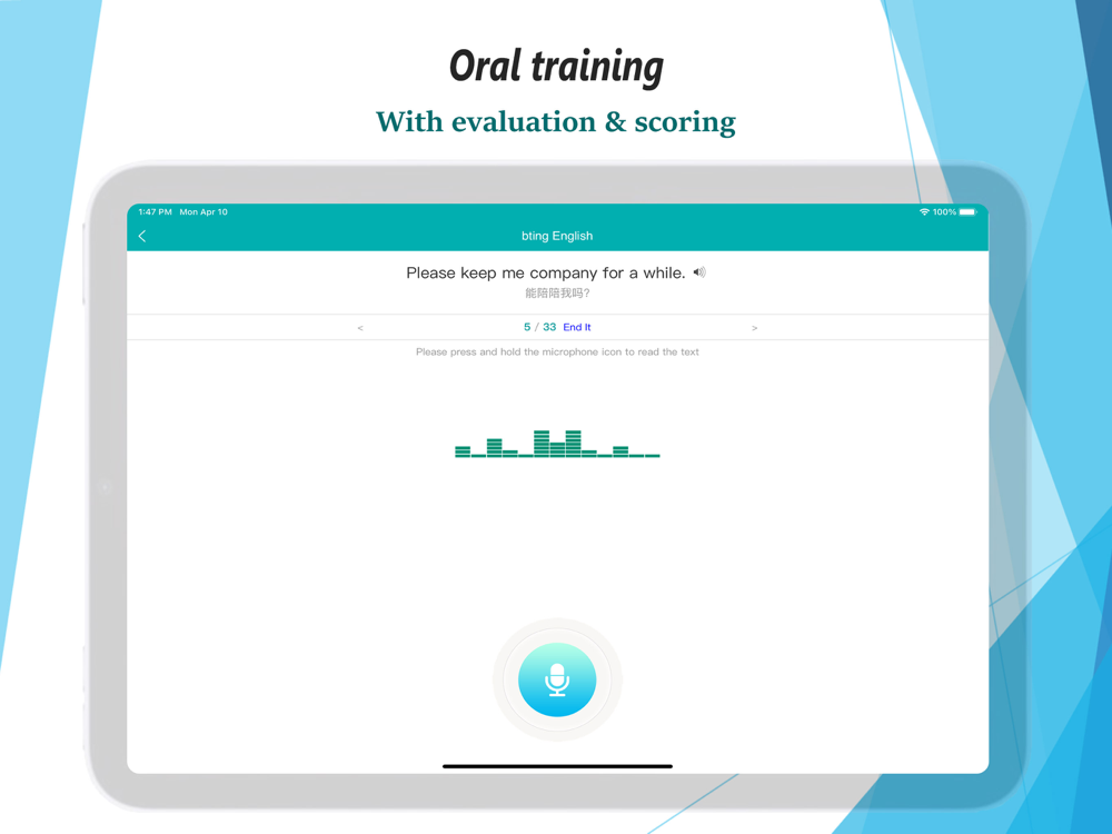 * Oral training, automatic evaluating user pronunciation. 15 minutes per day, You can speak fluent English