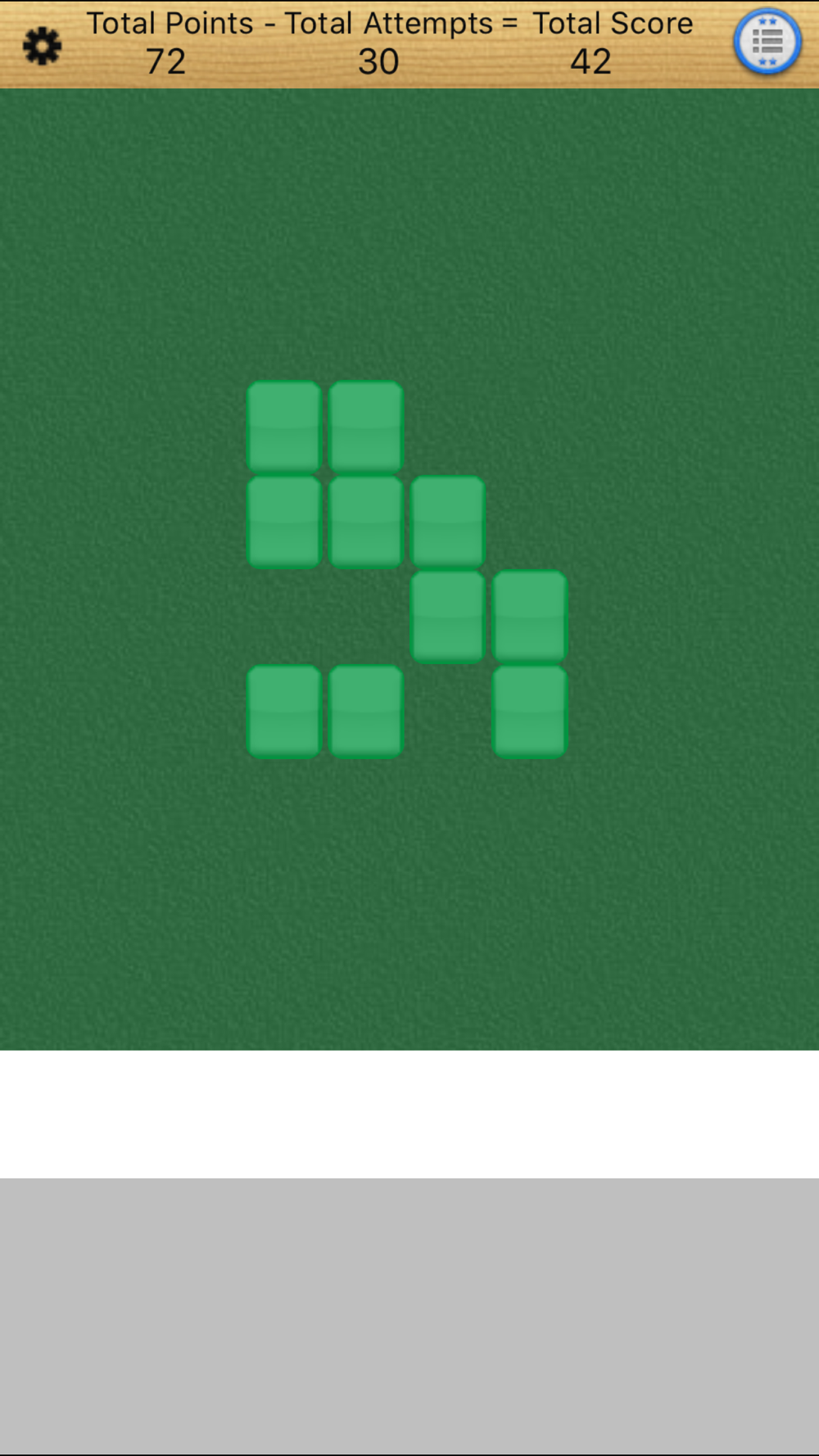 This game is a variation of Memory and Mahjong. It begins with 4x4 tiles face down on a board. Tap on any three tiles to flip them open. If you get three of a kind, or three in a row, you will earn points and the tiles will be removed from the board. Otherwise the tiles will be flipped back over and you can try again. You will move to the next level when there are no more tiles on the board that can form a hand. Each new level will have more tiles on the board. The game ends when you have completed a board of 10x10 tiles.