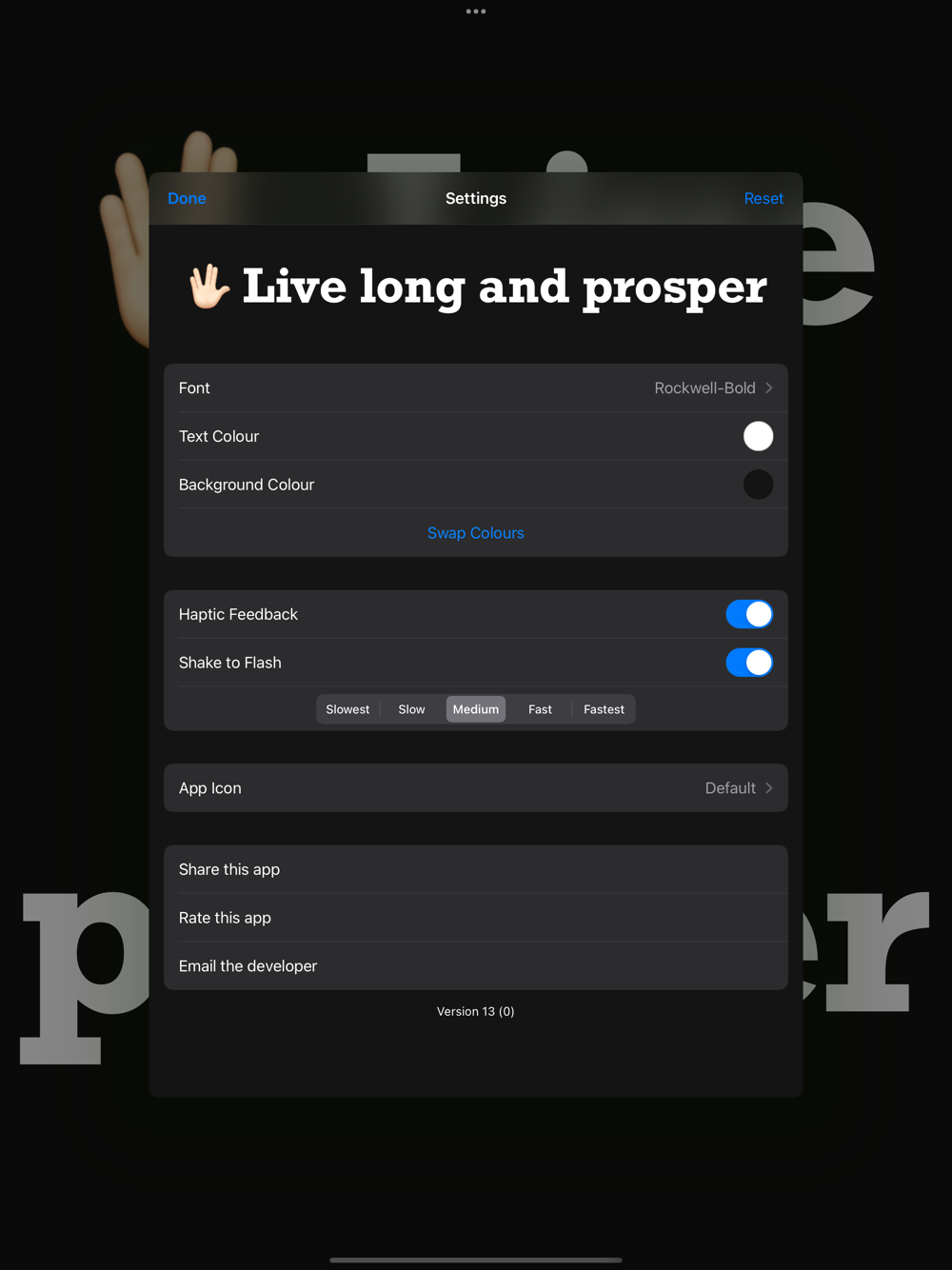 Shake device to flash your message (alternates between background colour and text colour).