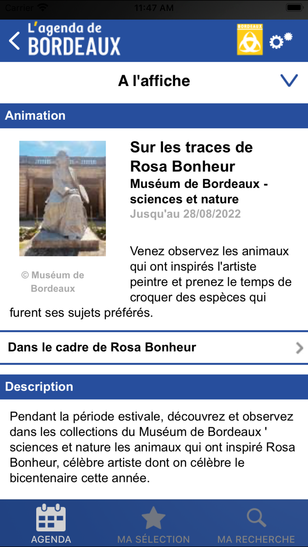 "@bordeaux", une application gratuite pour s'informer de tous les événements de la capitale girondine. La Ville de Bordeaux met ainsi à la disposition des Bordelais et des visiteurs de la région l'agenda, mis à jour quotidiennement, d'une ville qui bouge !