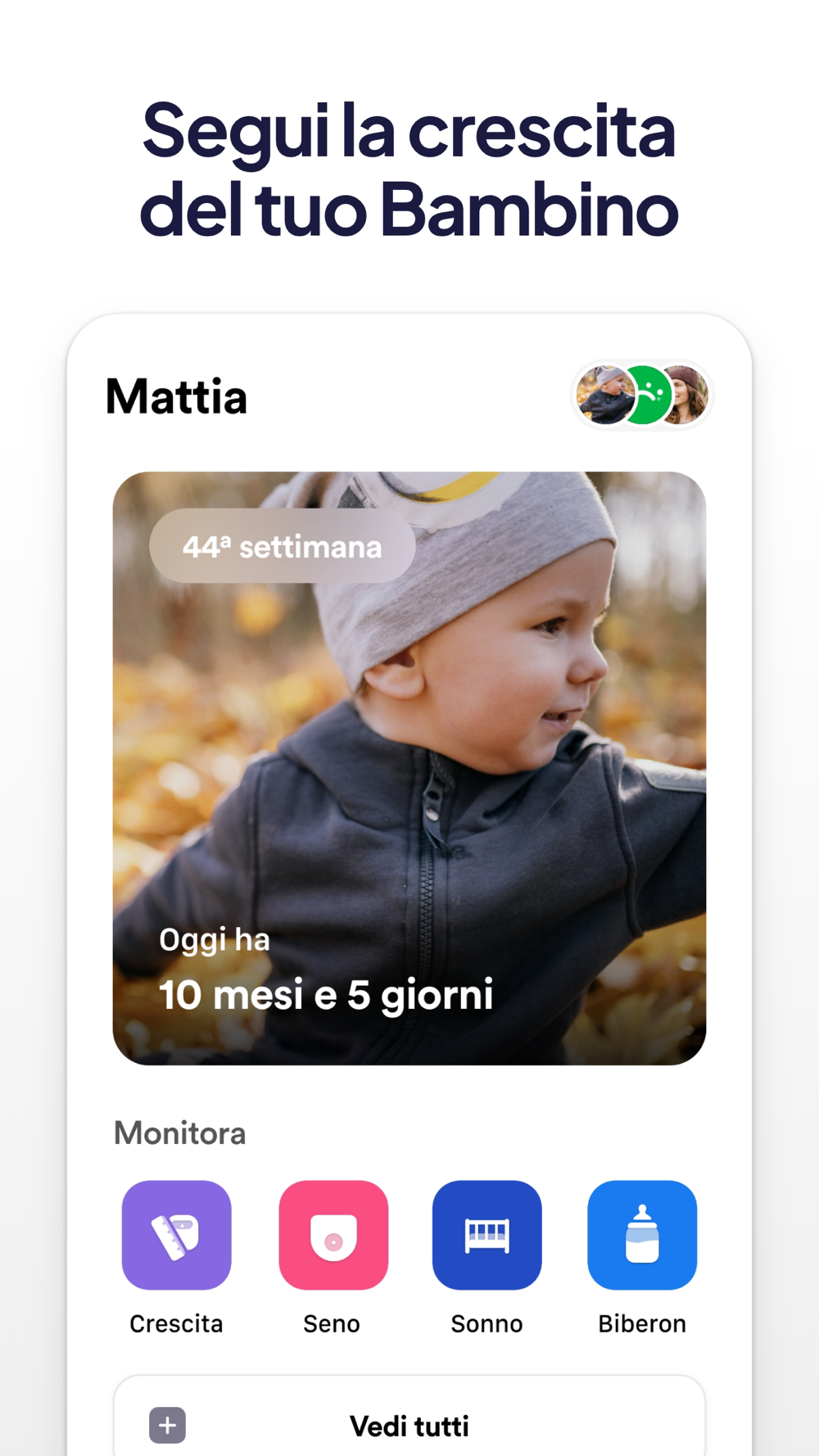 Crea il profilo dei bimbi, aggiungi informazioni, usa gli strumenti, impara nuove cose sulle tappe della crescita e sviluppo neonato.