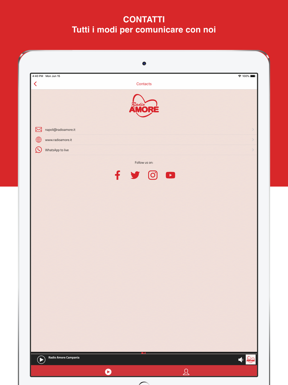 Nuovo asset grafico.Nuovo player audio per rendere migliore l'esperienza d'uso dei nostri ascoltatoriAggiunta la possibilità di mandare un messaggio WhatsApp alla direttaSegui sui nostri social