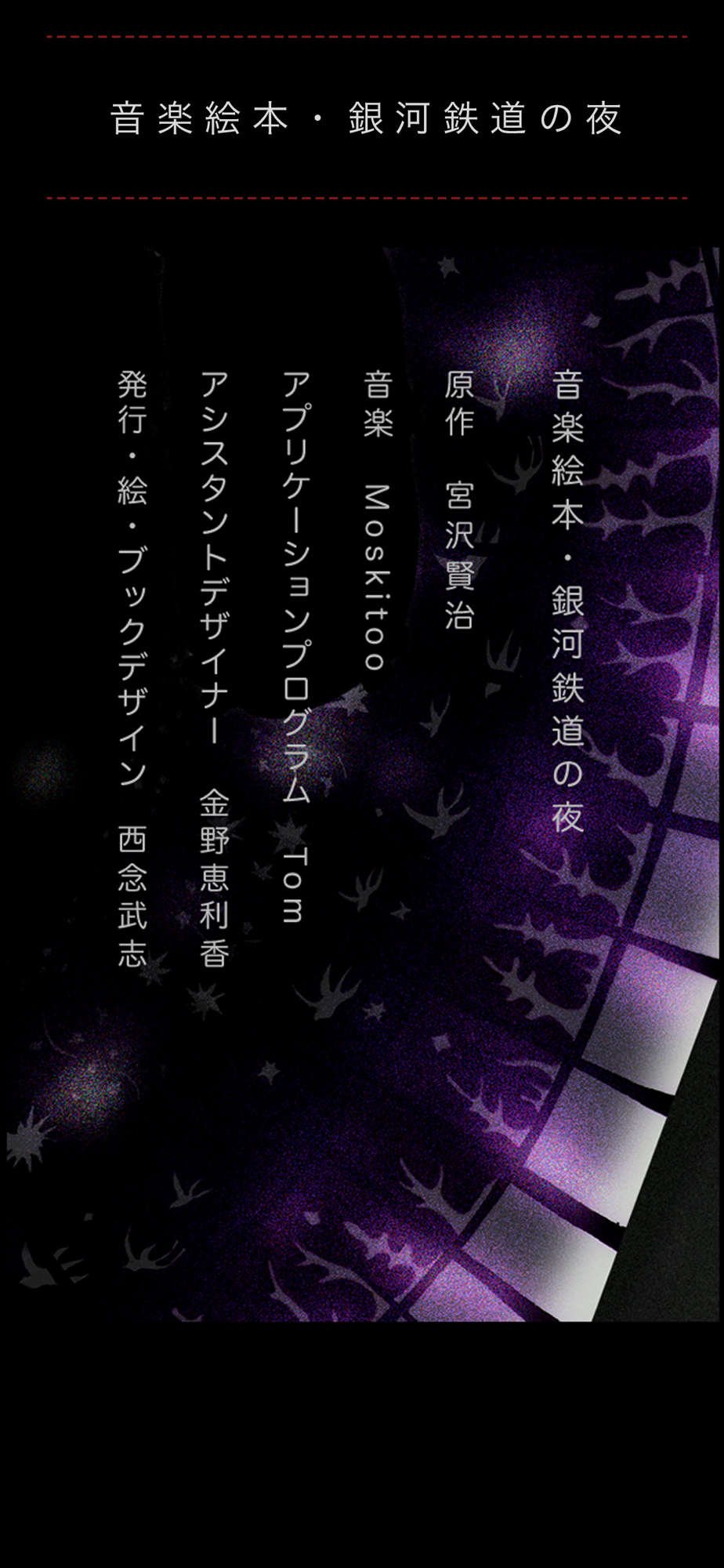 ・YouTubeにてデモ映像がご覧頂けます。詳しくは「APPサポート」または、YouTubeで音楽絵本・銀河鉄道の夜を検索してください。
