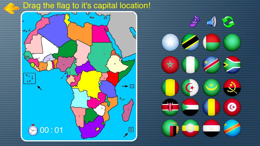 By playing this game, you can learn these countries' flag, map, country name pronunciation, capital location etc.