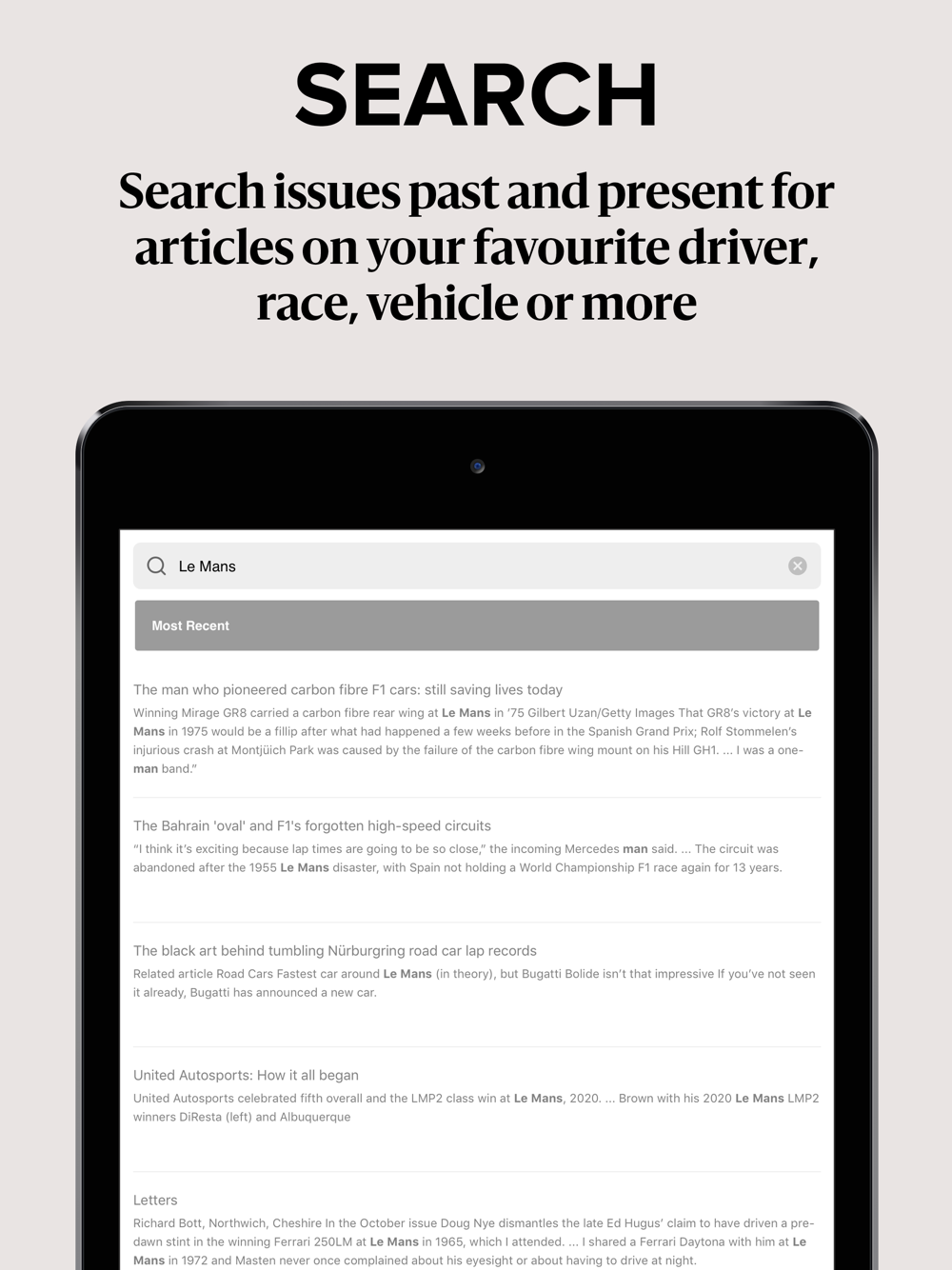 Plus, download and read the digital editions of Motor Sport magazine. Once downloaded they're available to read offline, on all devices – perfect for travelling or the daily commute. Each issue is packed with exclusive interviews, industry insights and uncensored commentary from some of the best motor racing writers in the world.
