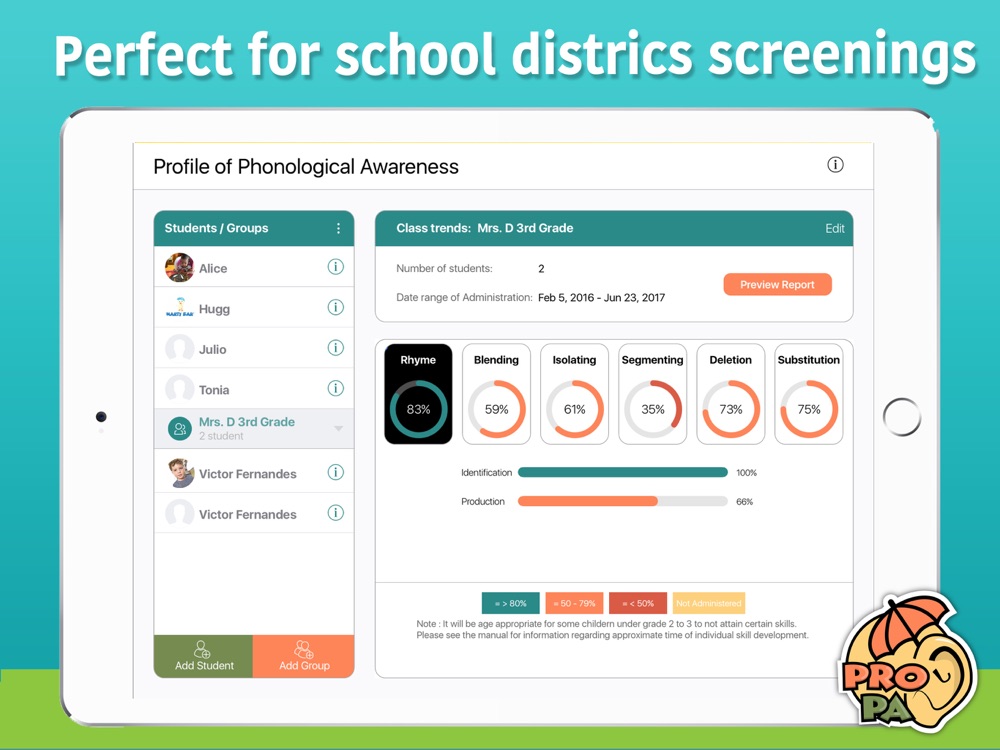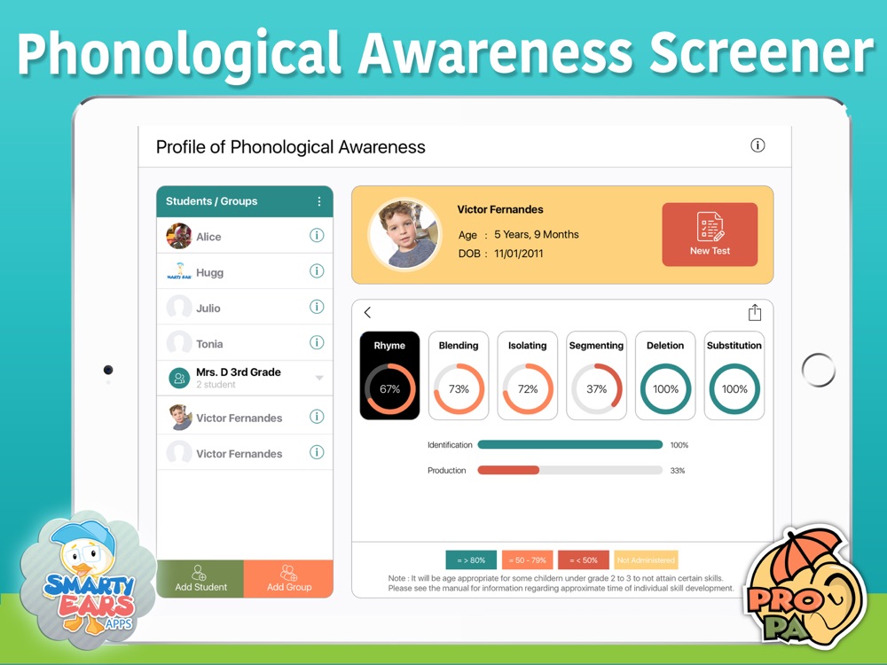 The Pro-PA aids in obtaining a complete picture of a student’s individual skills in phonological awareness by assessing and analyzing errors and providing information about the approximate skill attainment in each individual area. An understanding of the profile of skill attainment as well as specific types of errors made by a child, which can be outlined in the notes, will result in an intervention plan that can more appropriately and specifically target the child’s phonological awareness difficulties.