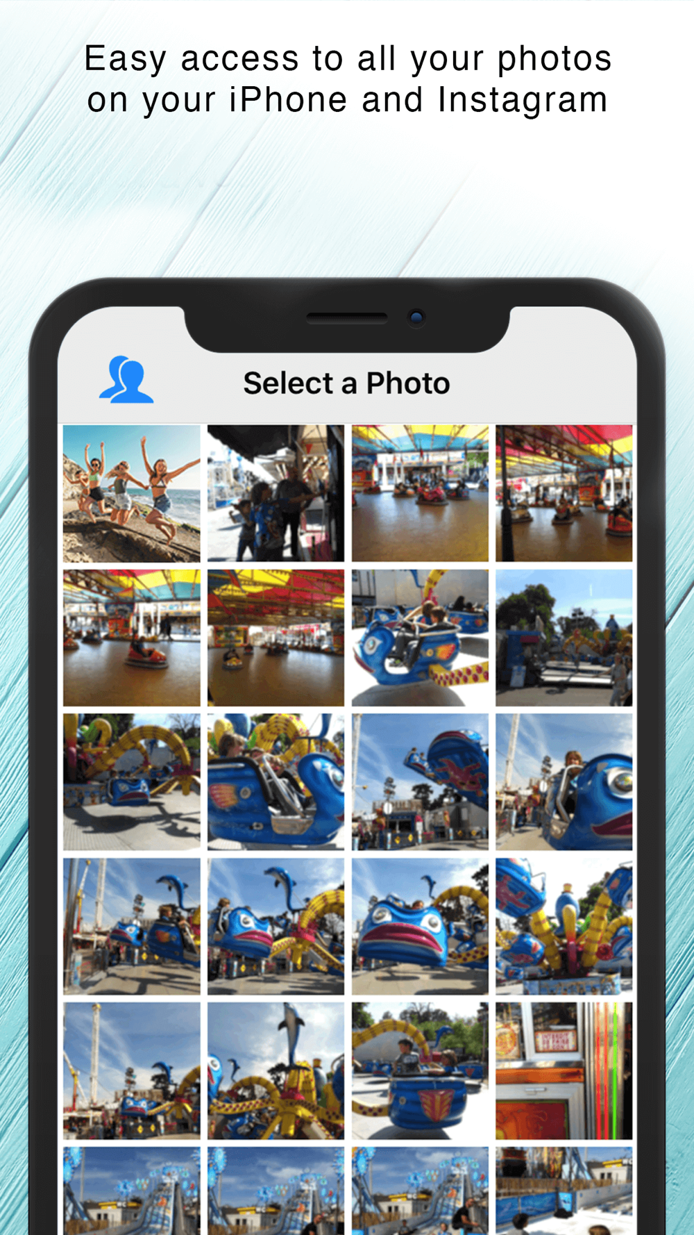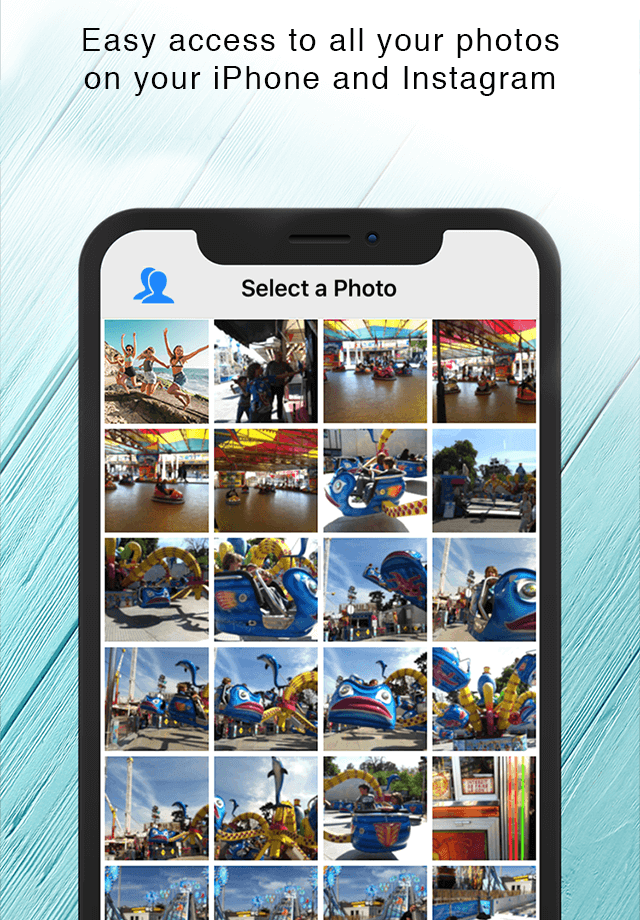 You don't use Instagram®? You can also take a picture from your iPhone or use one from your albums!