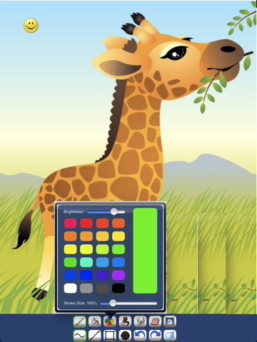 The intuitive Color tool makes color selection fast and easy, and the Stroke Slider lets you adjust the size of your Brush! Enjoy Free Draw, Straight Line, Outline or Filled Box, Circle or Square.