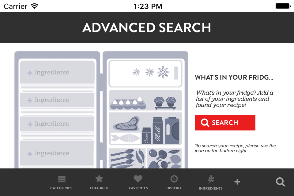 ** Search: you can search by recipe name or by ingredients, according to what you do have into your fridge.