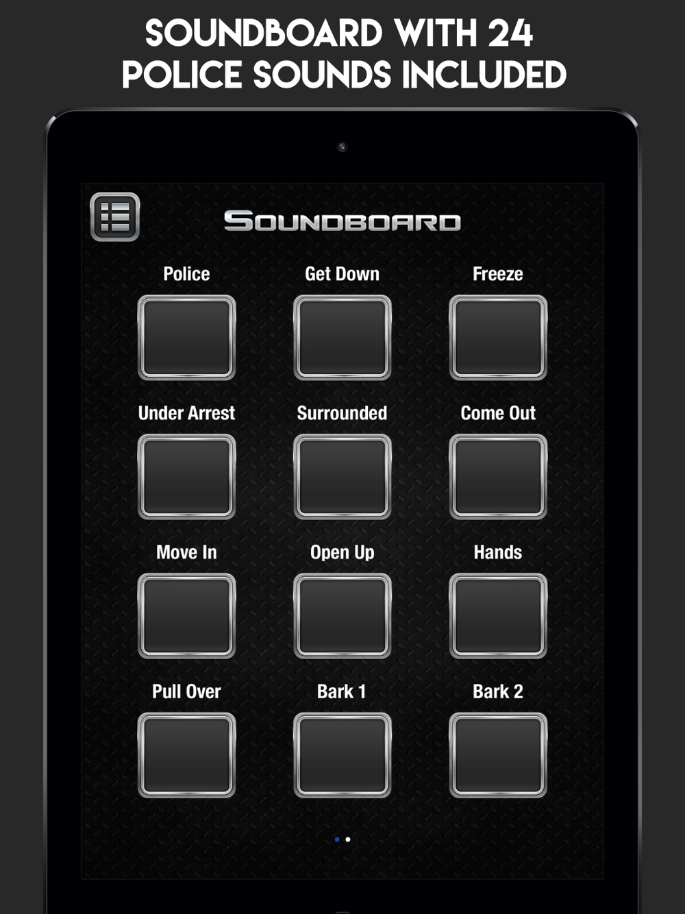 • A police soundboard with 24 different sound effects. These include typical police sayings, explosions, dog barks and other fun sounds.