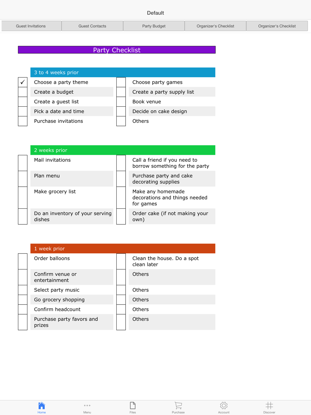 Do you face such difficulties? If yes, try Party Plan. Its a simple app focused on providing you a step by step procedure to organize parties in a quick and easy to use checklist format. In addition, it helps you track your guest contacts and invitations, party activities, and most importantly party budget giving you the difference between actual and estimated costs.