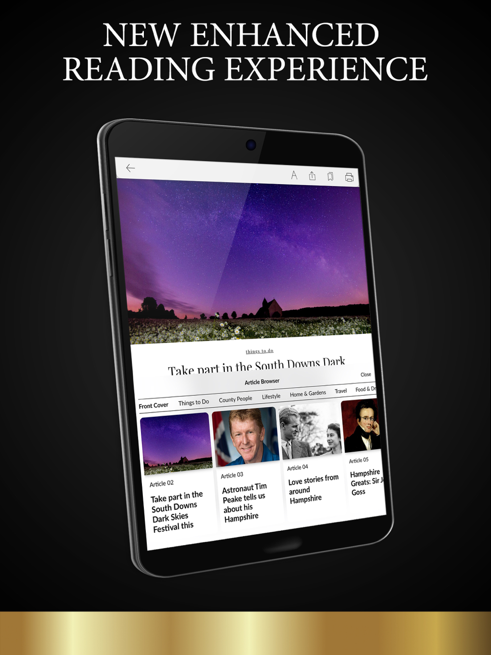 Each month, everyone who loves Hampshire will find something to indulge in. We bring you everything from the best places to walk and irresistible food & drink, to the finest Hampshire properties and a wealth of inspirational ideas for your home and garden. We will take you on a journey through Hampshire’s picturesque towns and villages, highlighting amazing places to visit and upcoming local events. All of this wrapped up in a beautiful and luxurious reading experience.