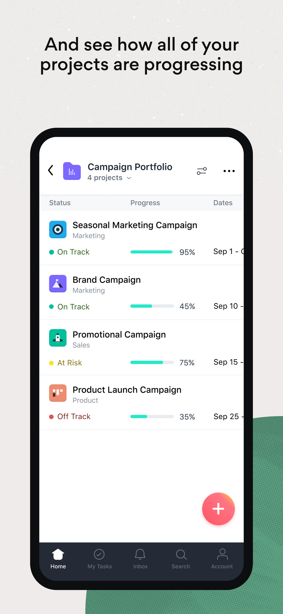 Keep collaboration going, wherever you are. Communicate with your teammates by liking, commenting, or attaching files directly to tasks. And get automatic updates about the projects and tasks that matter to you delivered directly to your Inbox.