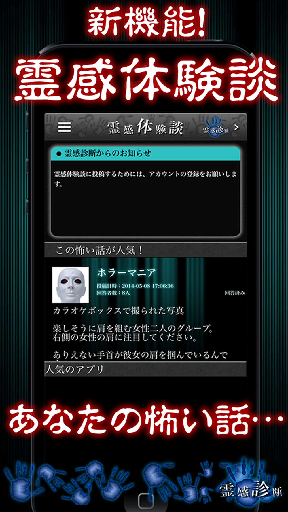 オバケが怖いアナタも、霊が見えちゃうアナタも、一度霊感診断してみませんか??家族や友達、恋人などみんなで診断して誰が一番霊感があるか競ってみよう!