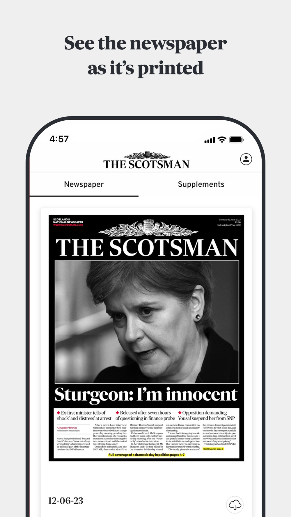 The new Scotsman newspaper app brings you a full colour digital replica of Scotland’s national newspaper every supplement and Scotland on Sunday, all presented in pristine detail and designed to be enjoyed on your smartphone or tablet device.