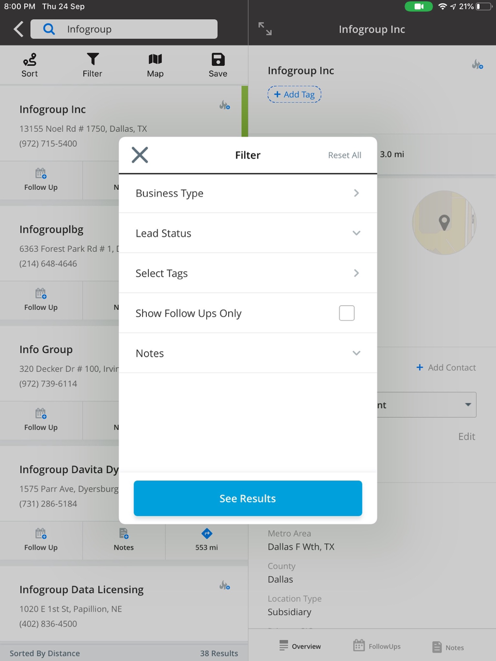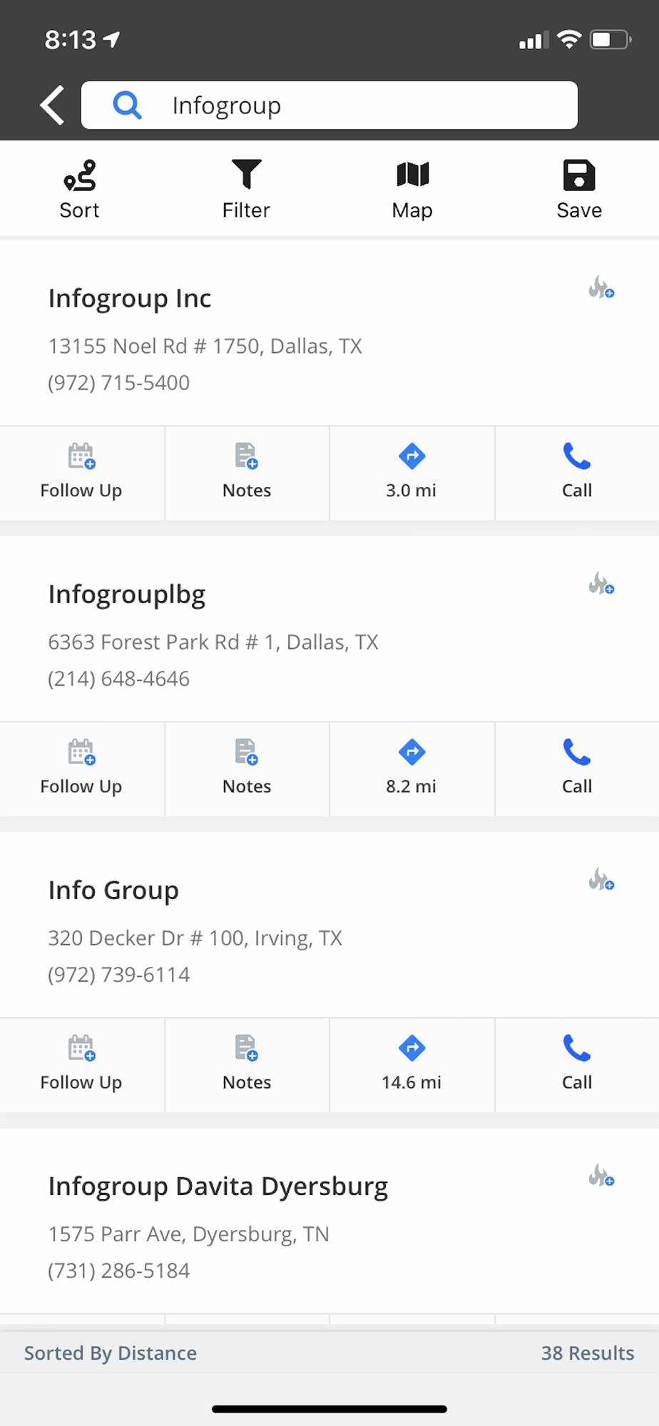 · Find Prospects Near Me: Search based on your current location to display all the businesses or consumers closest to you