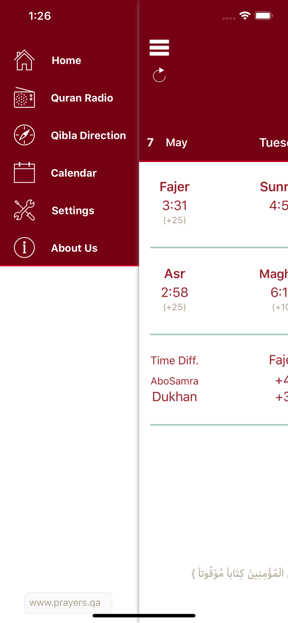 - Qatar Prayer Times based on Qatar Calendar House.