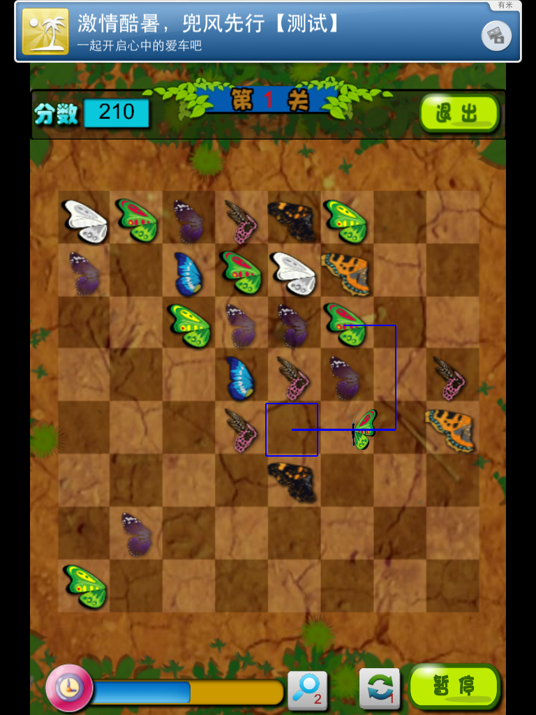 蝴蝶连连看这款游戏突破传统连连看卡片连接的方式,大胆创新采用了蝴蝶翅膀的奇思构想,当相同种类的蝴蝶翅膀连接的时候,蝴蝶就会翩翩起舞,美不胜收哦。玩家在分享连连看游戏的同时,还能一起欣赏各国珍贵的蝴蝶物种。大家一起来玩这款游戏让五颜六色的折翼蝴蝶都飞起来吧!
